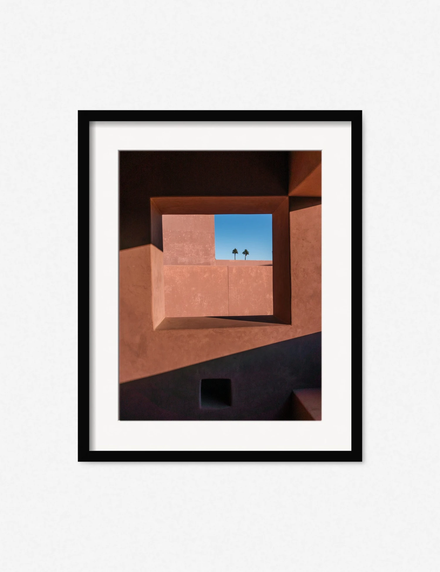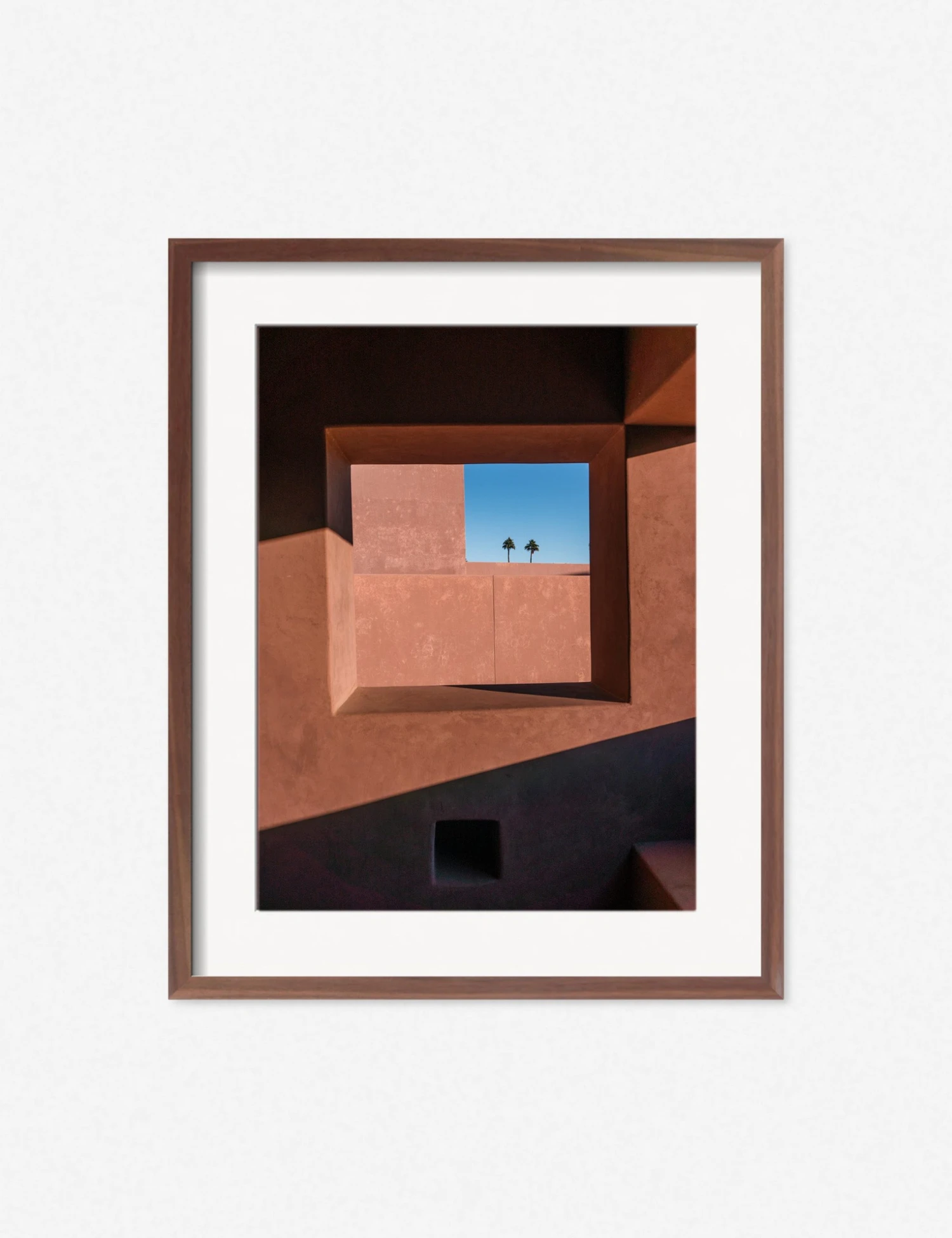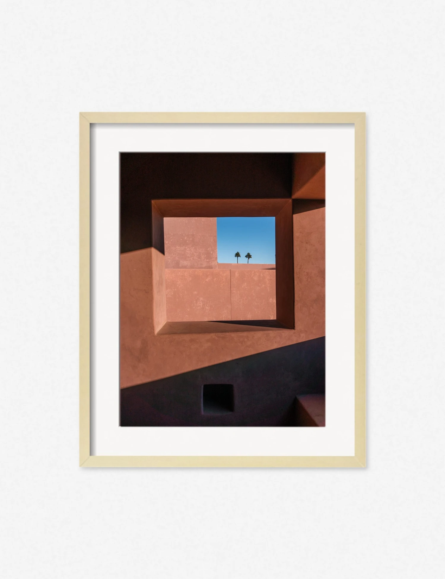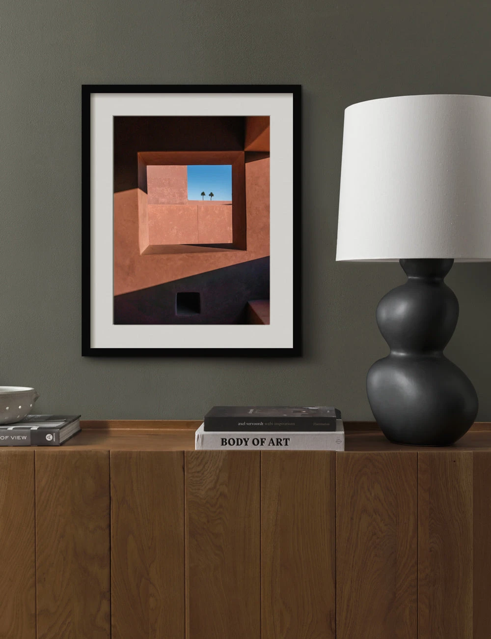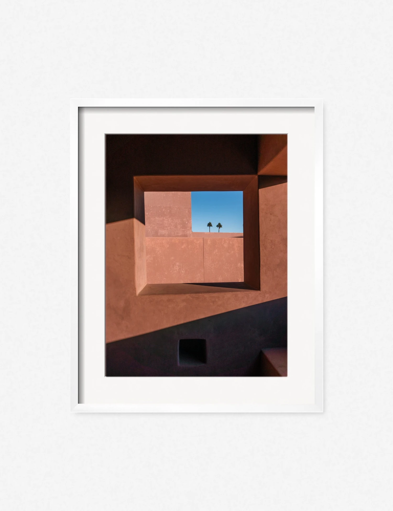 Carley Rudd travels the world, capturing tranquil scenes that evoke a feeling of visual escapism and an appreciation for our shared world. This selection of wall art photography features minimalist compositions and soft, natural hues that will bring a serene balance to a curated art wall decor. ‘A New Dimension’ features an earthy, architectural scene cast in a dramatic light where crisp, sculptural lines frame a blue desert sky