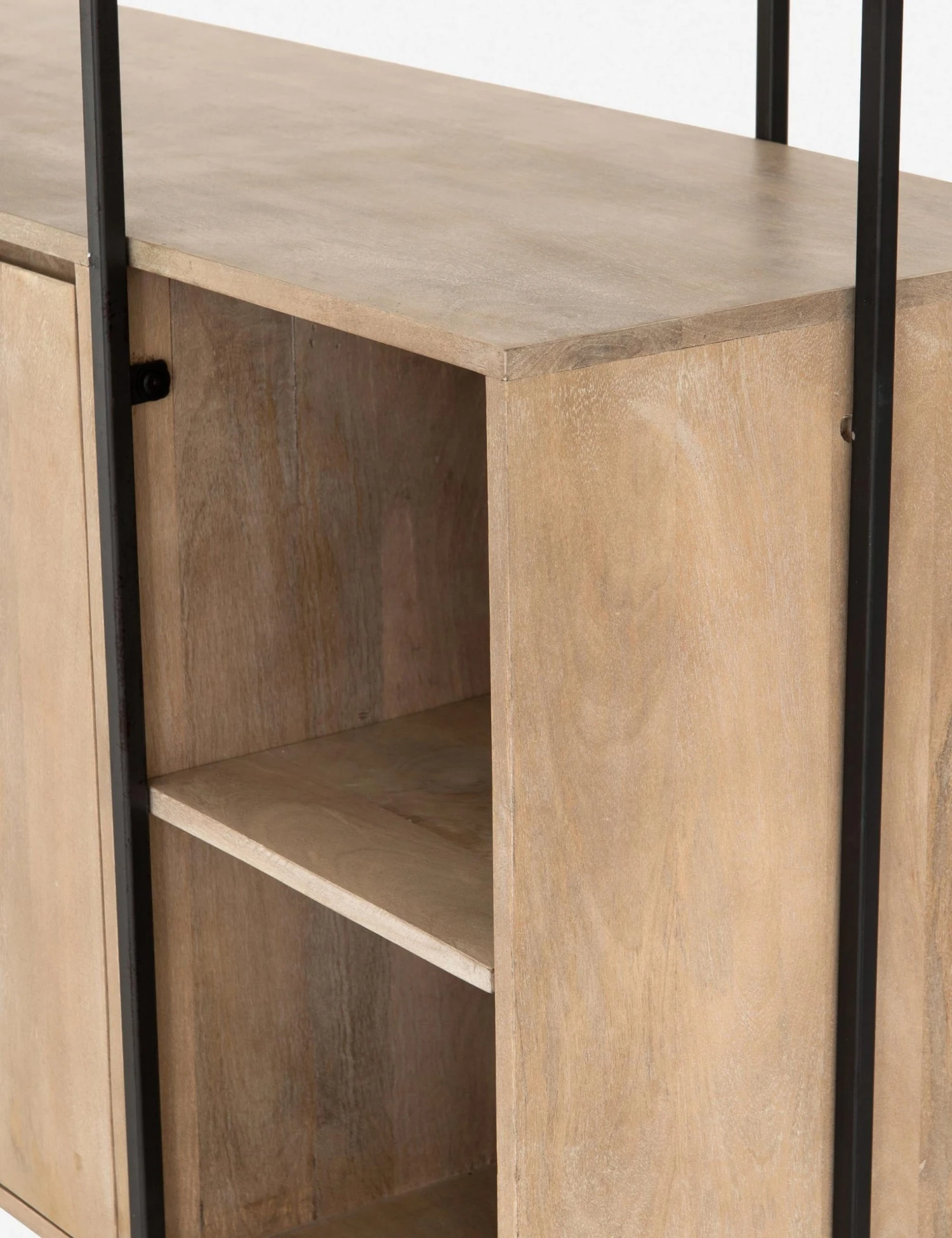 Simple and contemporary, this mid-century inspired sideboard offers functional storage and shelving with an airy, open design. Featuring a mix of materials and textures, this versatile piece can be used as a bar area, display shelf, and media storage all at once!