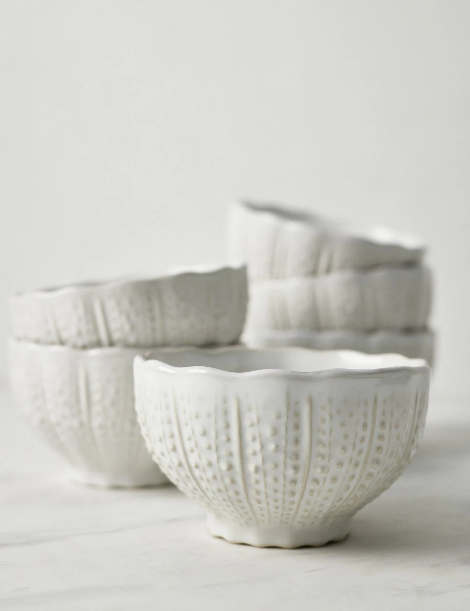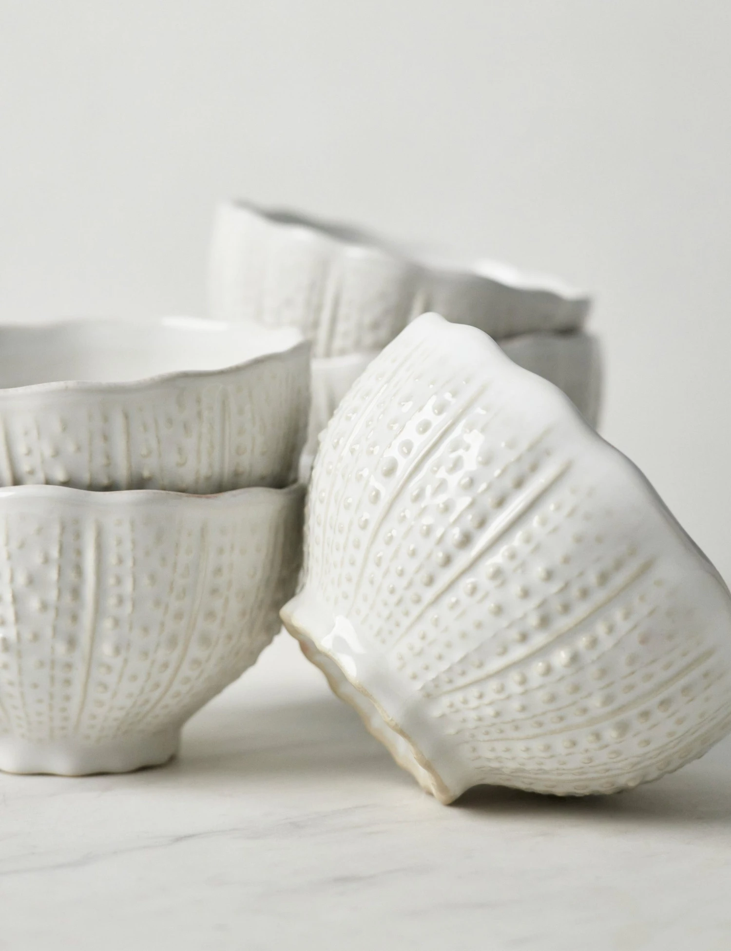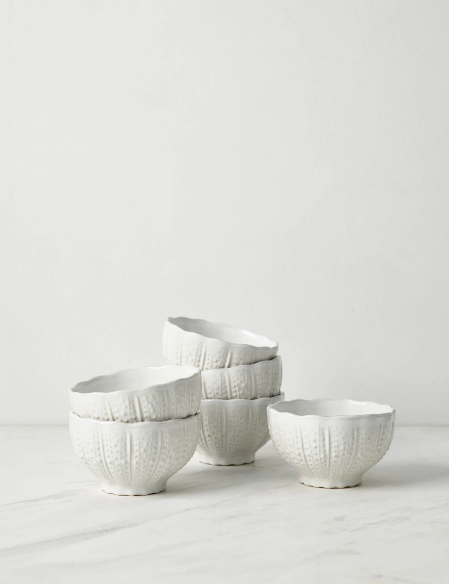 With the Costa Nova Aparte set of six fruit bowls, organic lines pair with a pearly gloss finish and subtly contrasted rim to offer a versatile appeal that will blend seamlessly into any dinnerware set. Whether building a bespoke dinnerware collection or filling out an existing one with everyday essentials, this small white scalloped stoneware bowl set is the perfect dish for serving appetizers or deserts with a unique touch.