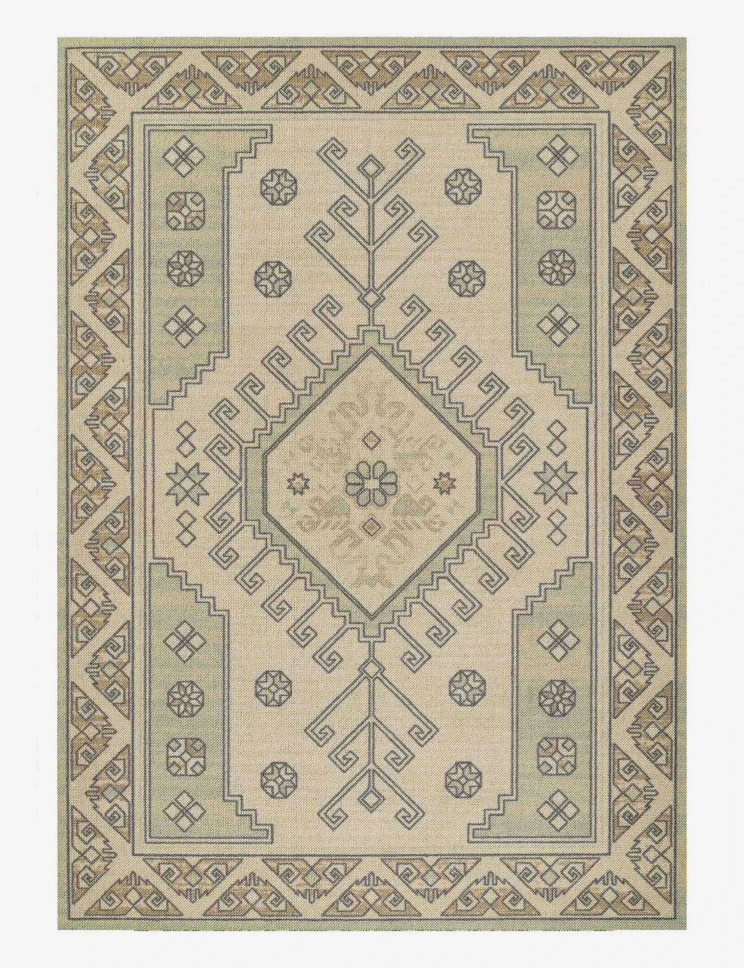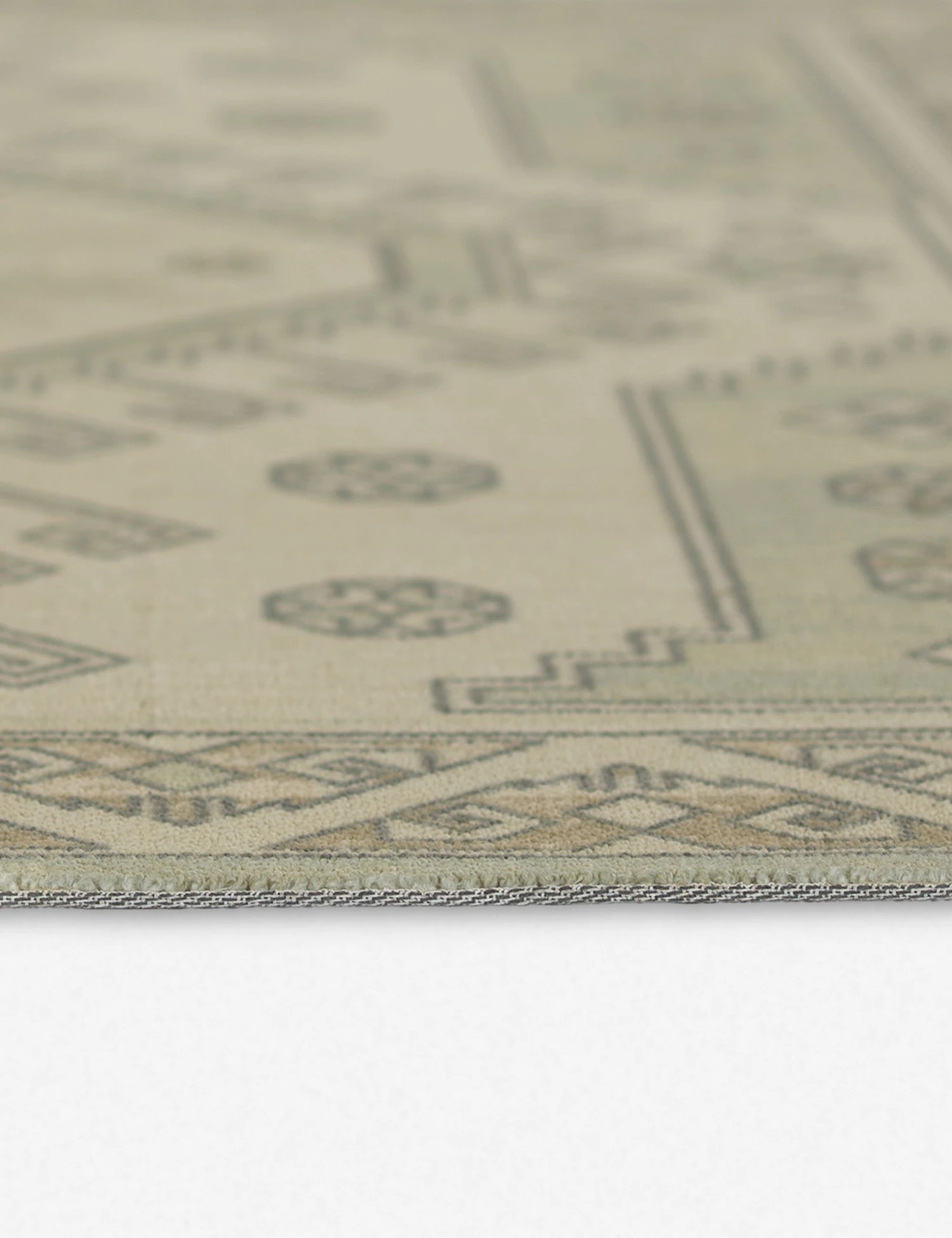 In its softer green and tan tones, this floor rug artfully combines a traditional, geometric design with modern functionality. Made from a wool-nylon construction, the intricately detailed pattern is then printed on, ensuring a uniform and tailored look. Style this durable area rug in your living room, eat-in kitchen, or transitional spaces.