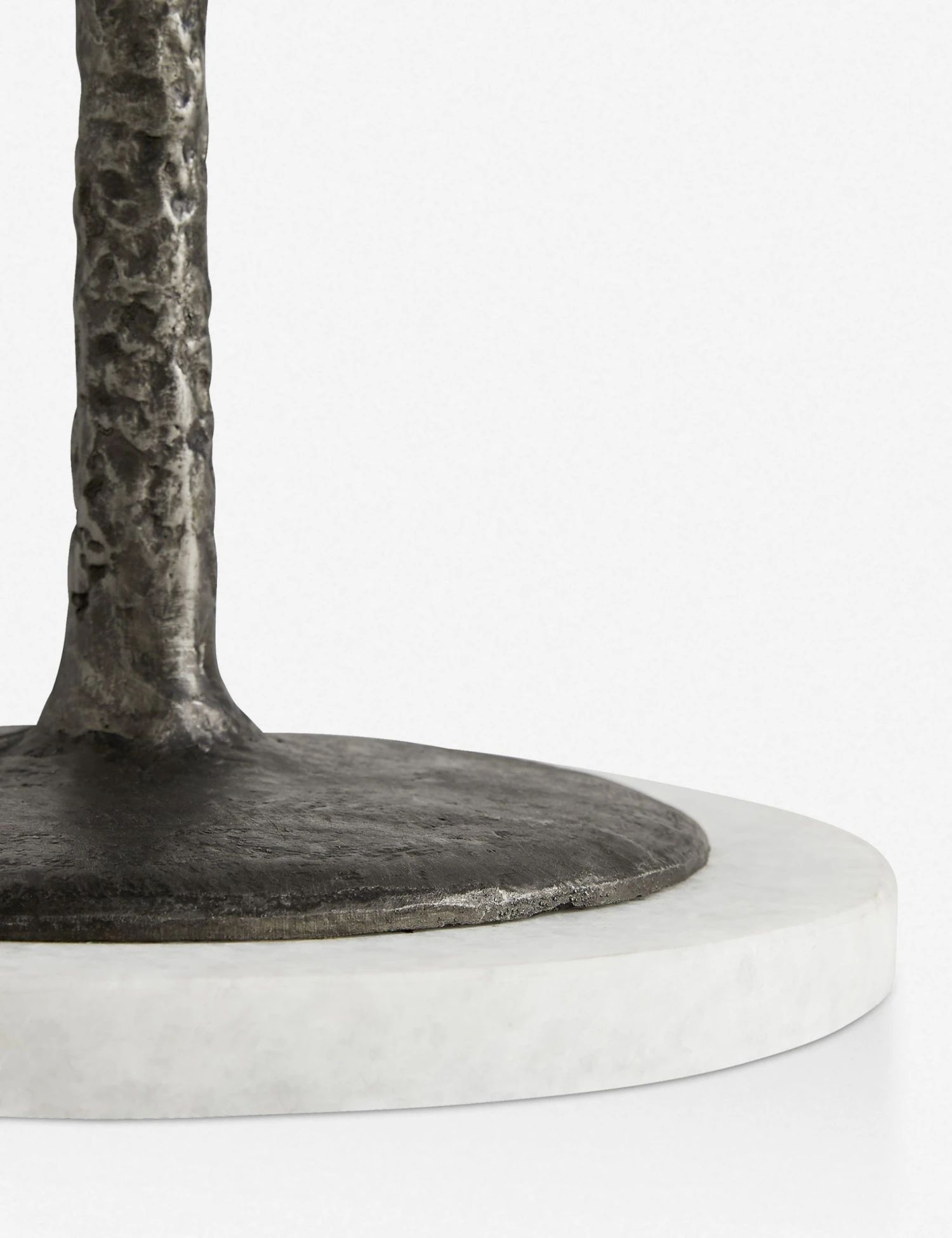This sculptural floor lamp is in a league of its own, featuring a slim cast iron base with an open diamond shape that makes it a focal point in any room. Finished with a simple drum shade and a white marble base for an elegant touch.