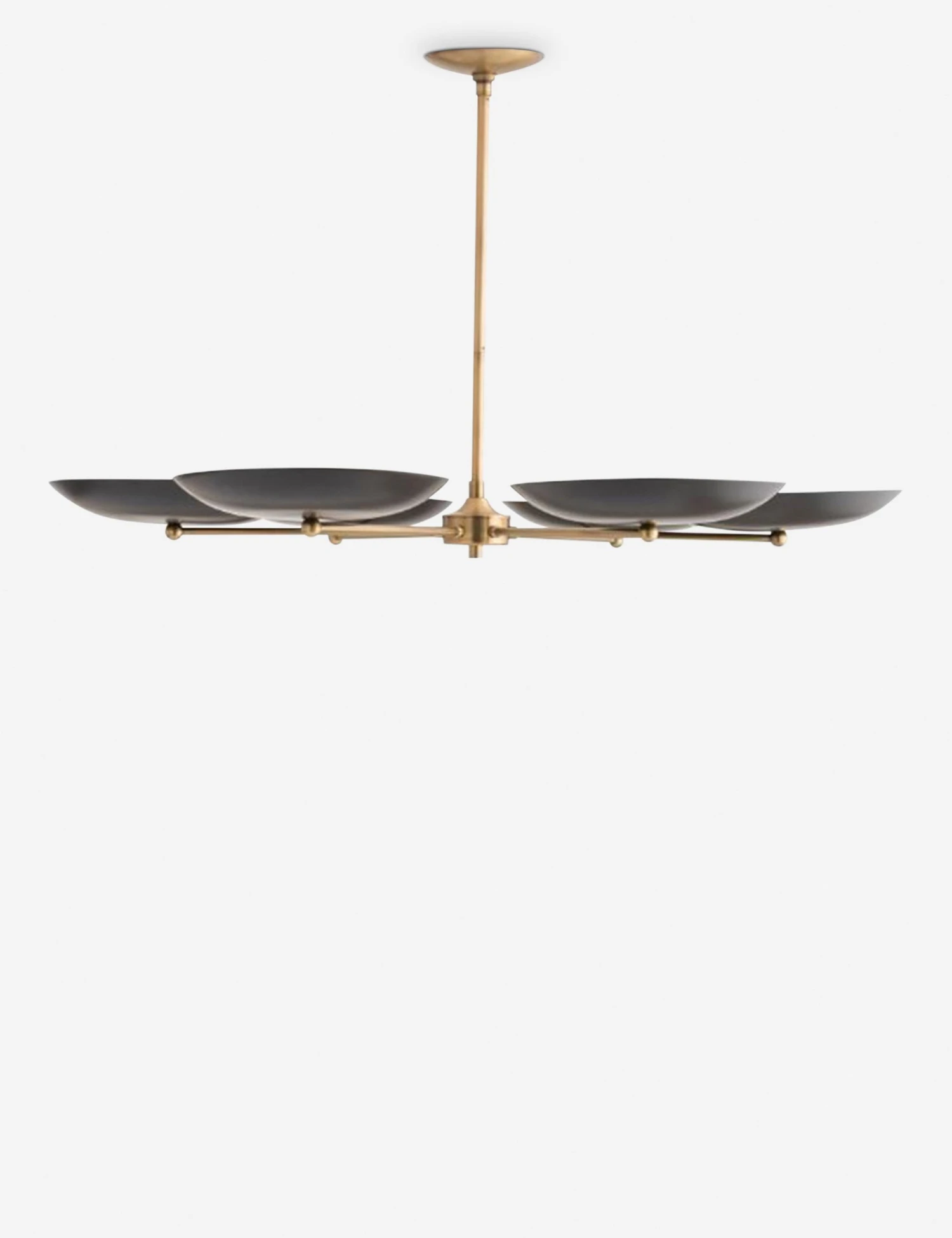 Inspired by old-world torch chandeliers, this totally modernized piece is designed with upward-facing bronze plates that illuminate with a soft, warm glow.