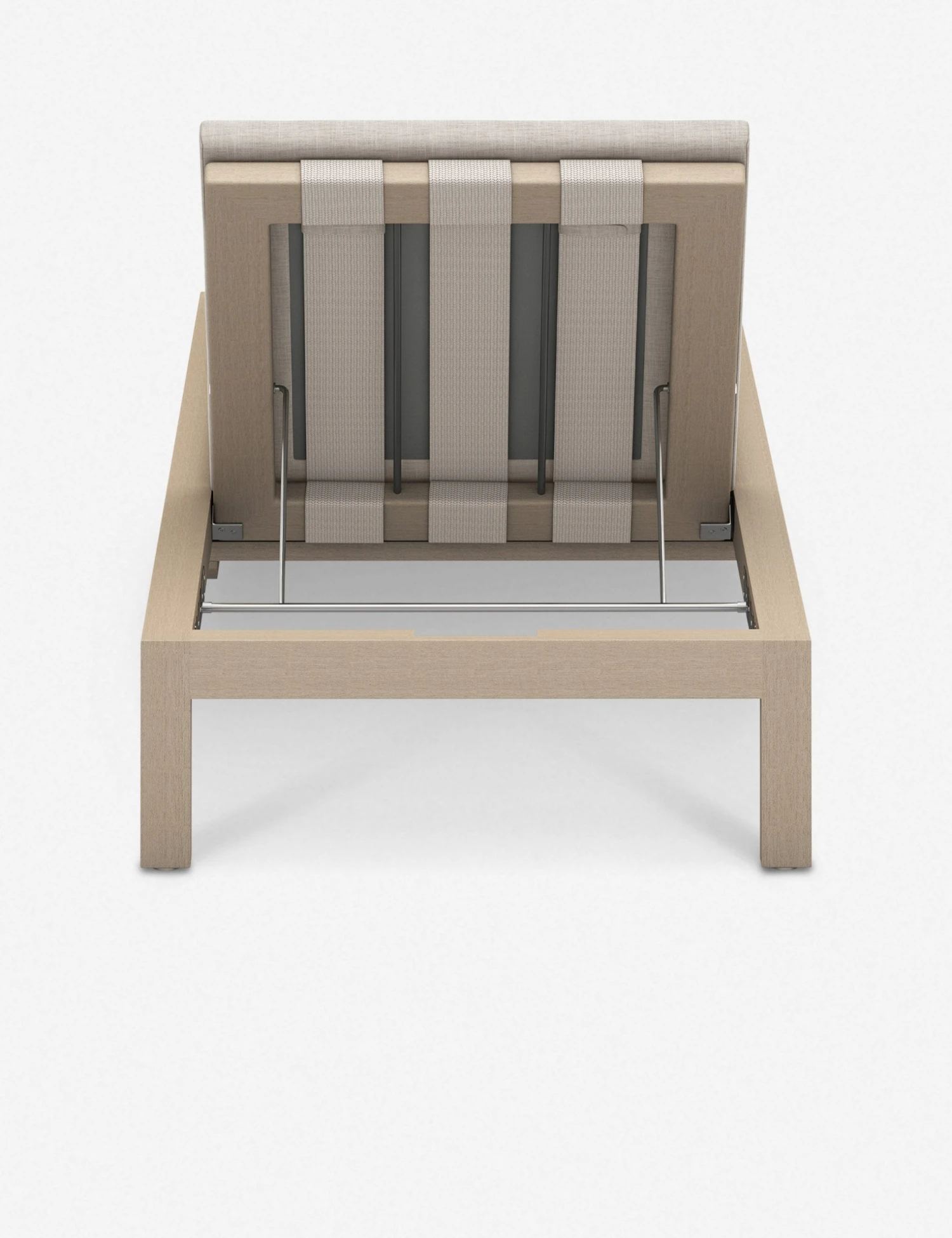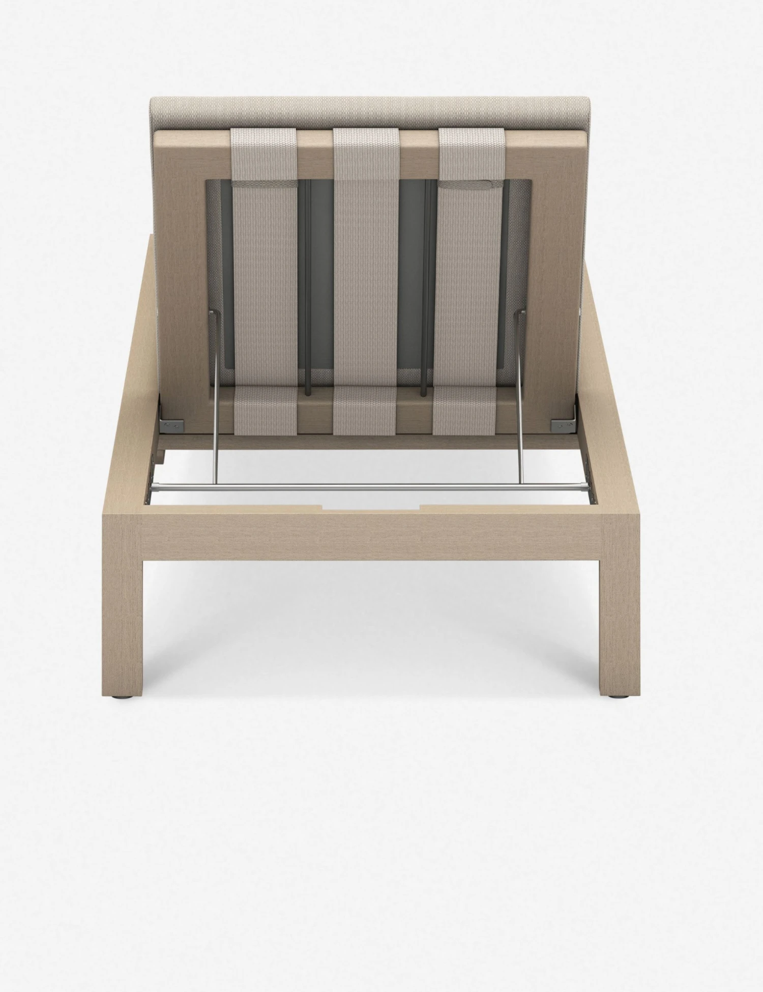 A clean, solid teak frame inspires a stunning minimalist appeal in this outdoor chaise lounge. The performance upholstered cushions and adjustable back offer easy comfort with a laid-back style. Plus, we love the attached side table for cold-drink lounge days.