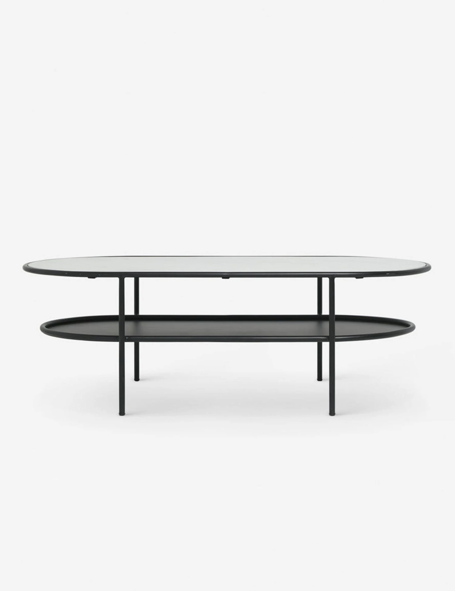 Sleek and stylish—a marble top adds a polished touch to this oval coffee table, while the iron frame sets off an airy profile with a lower shelf for storage and decor. We love this as a new coffee table to refresh a transitional look that combines timeless elements with modern design.