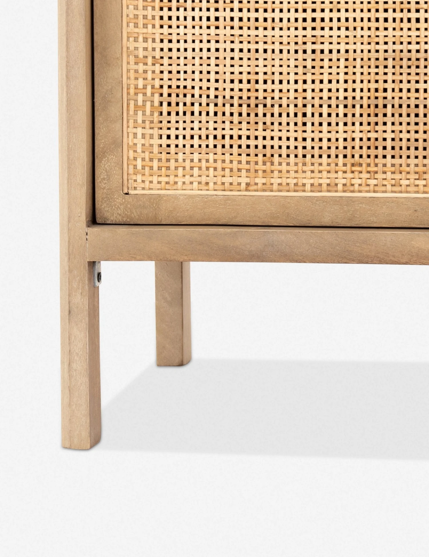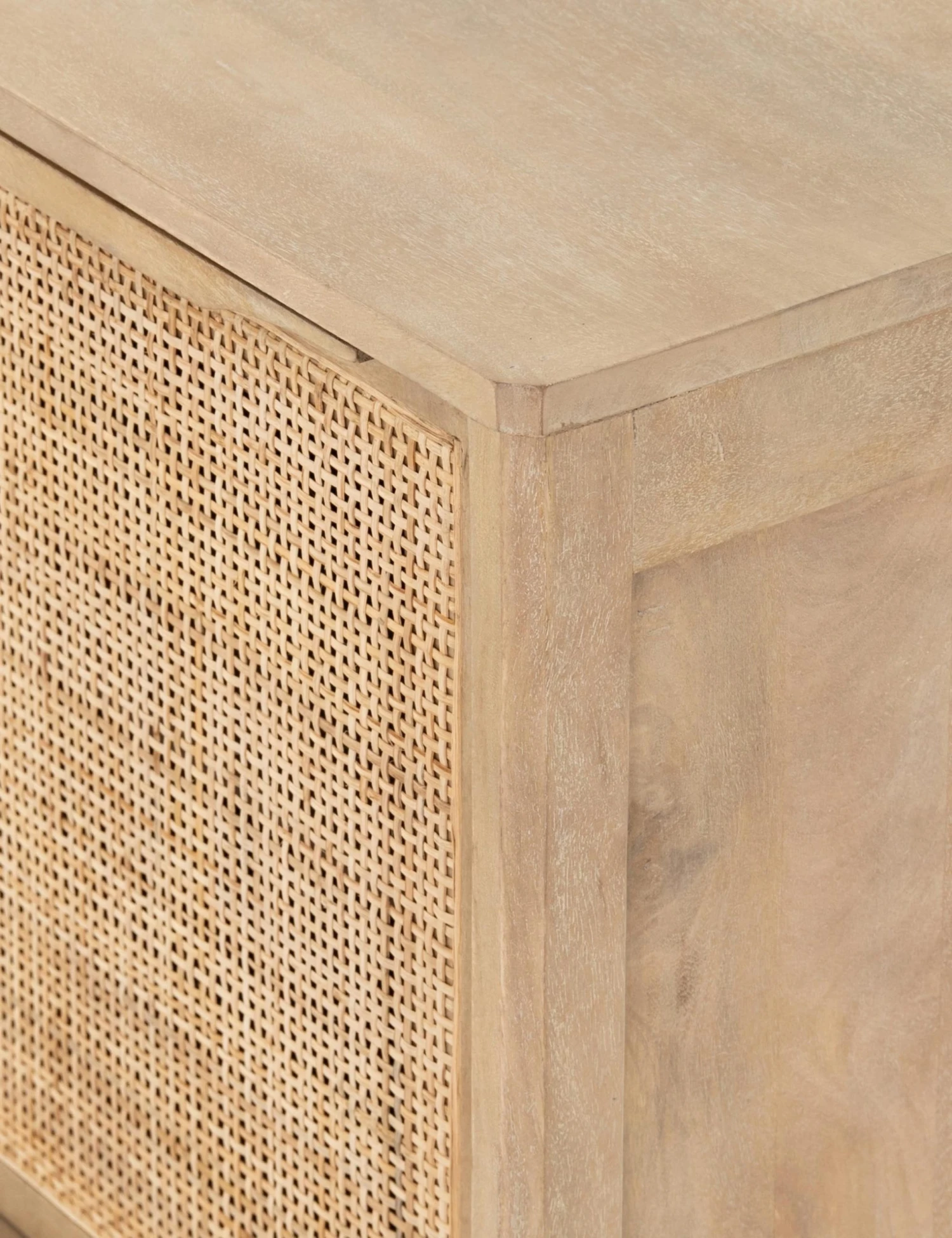 A sleek, square silhouette is a minimalist way to elevate a bedroom without too much formality. The woven cane door offers gorgeous tonal variations for added texture, and we love the practicality of an easily removable shelf.