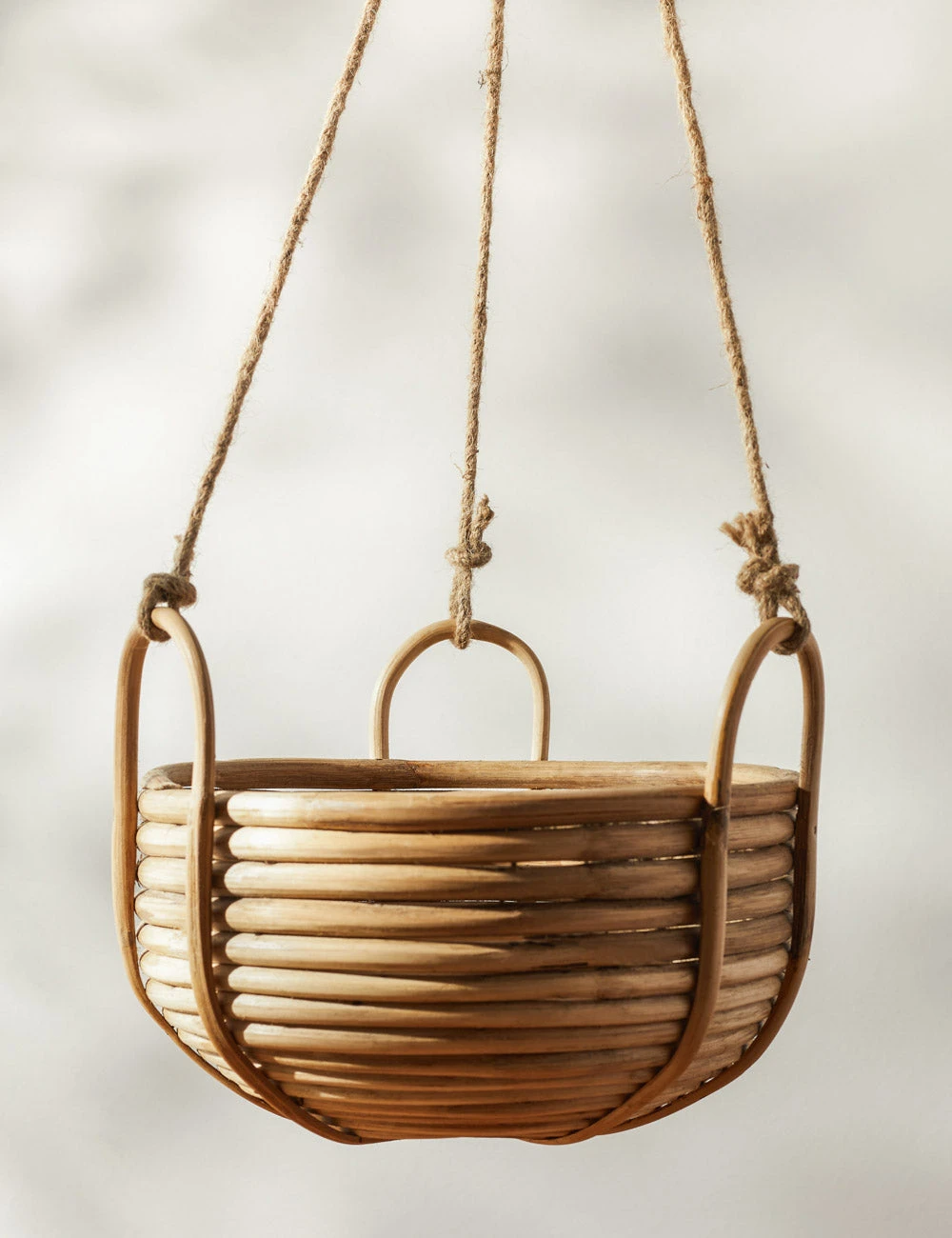 Turn your outdoor or transitional area into a refined oasis with this hanging planter. A jute strap suspends the woven rattan holder for an artisanal touch that can fold naturally into a garden terrace or an airy, sunlit room. This planter is perfect for small vine plants like golden pathos or English ivy.