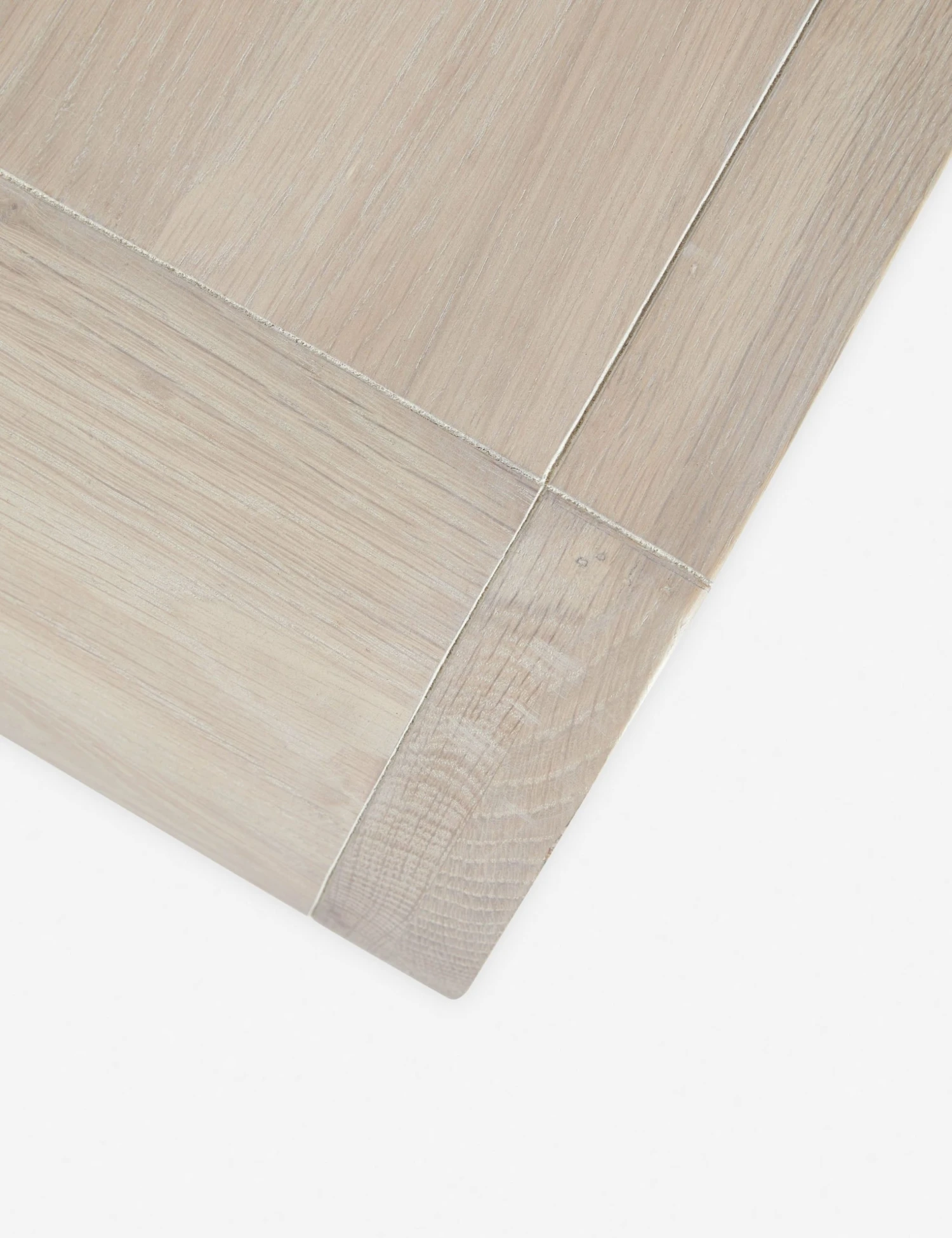 The whitewashed finish of this nightstand warmly compliments the arched corners of its understated design. It is fitted with a sleek iron pull, a roomy drawer, and an open shelf to offer storage and style in equal measure. Place this oak wood bedside table in a modern, airy bedroom.