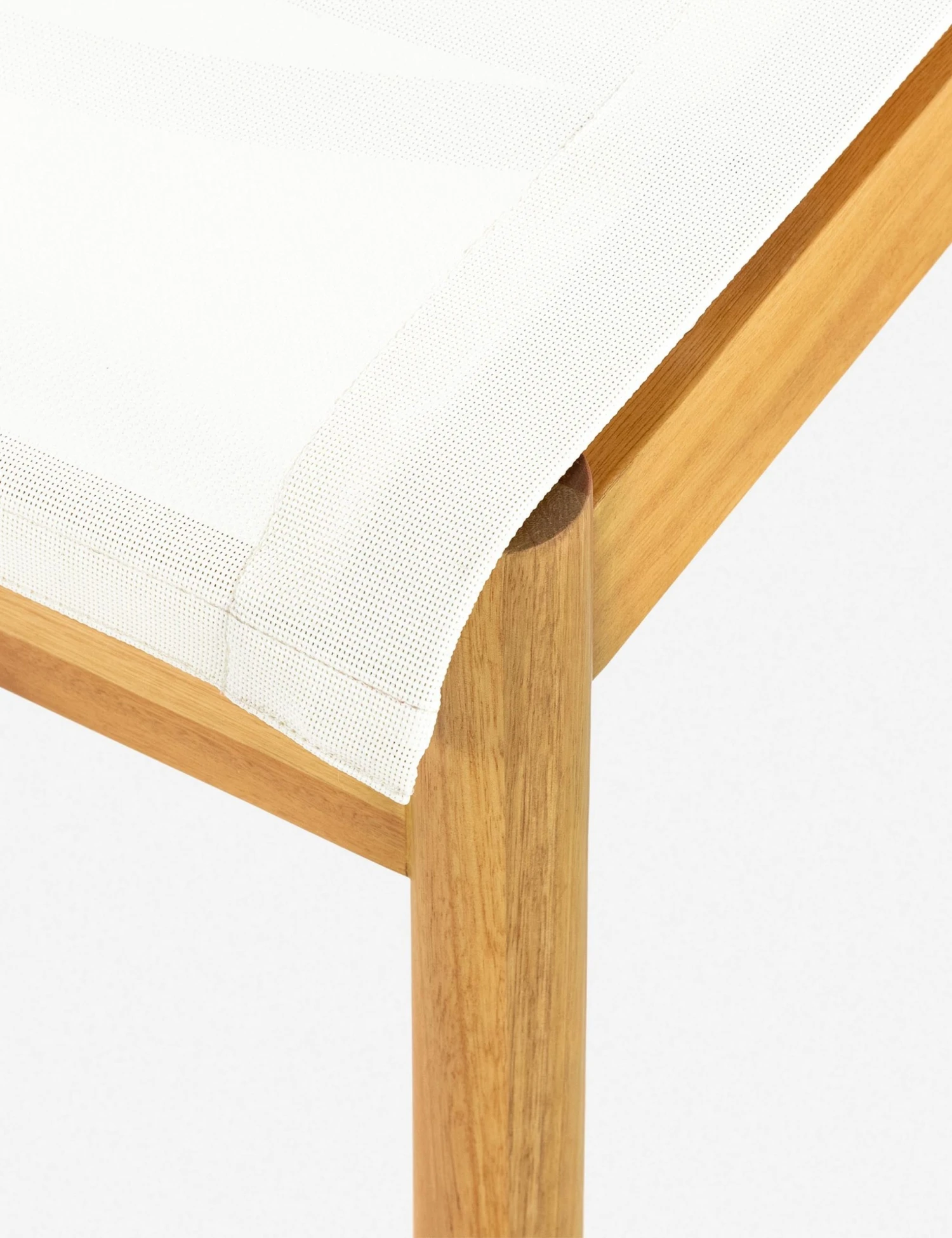 Clean, essential design offers a refined outdoor style in this streamlined ottoman. The eucalyptus frame is highlighted by a warm finish and fitted with a quick-drying mesh top. Style with the Charise collection for a tailored poolside look, or fold this versatile accent into any sunlit aesthetic.