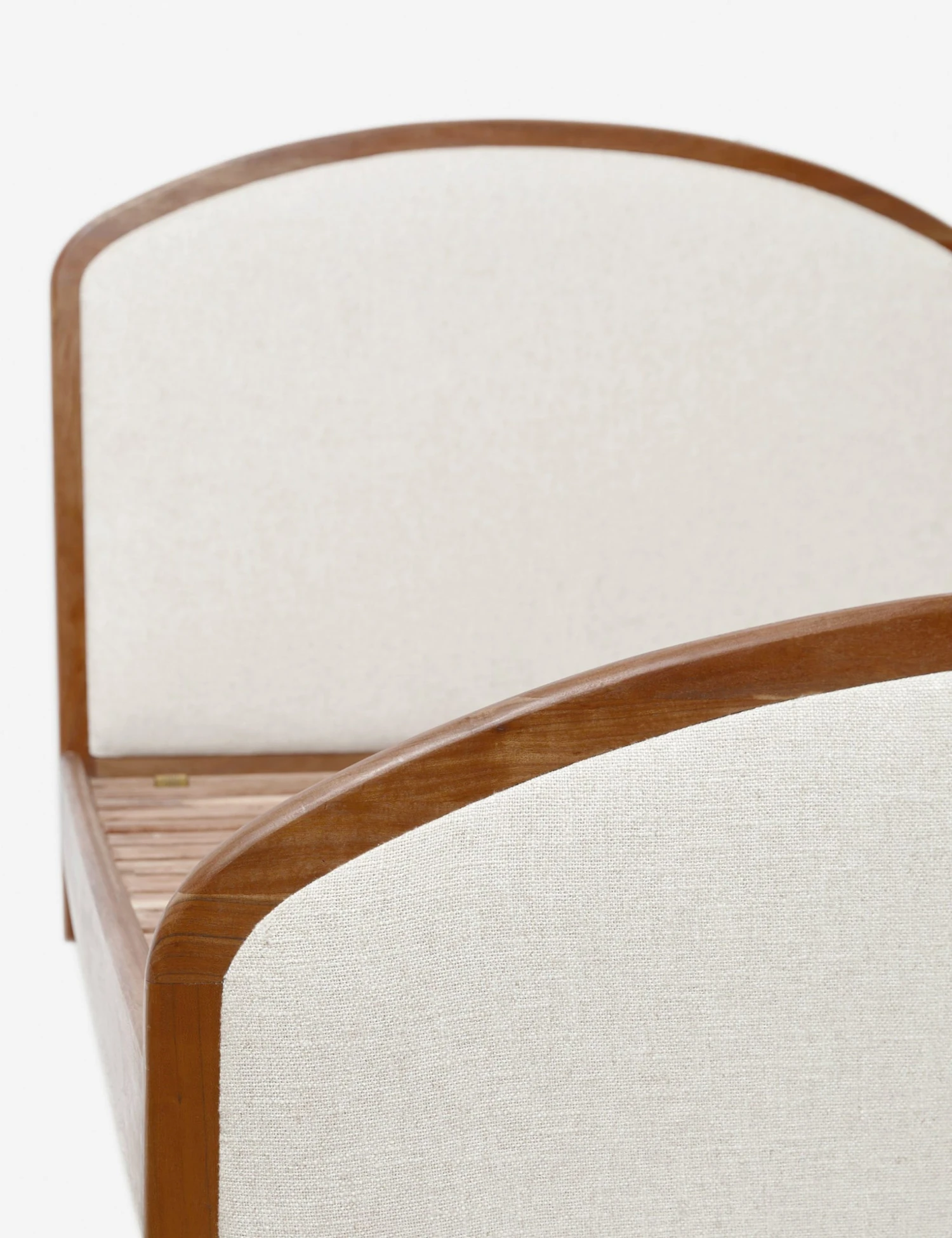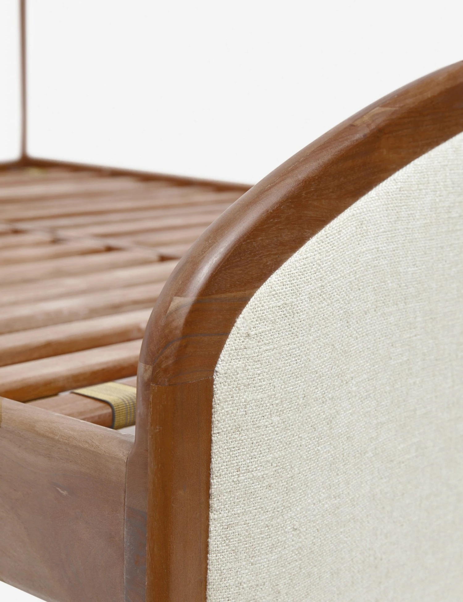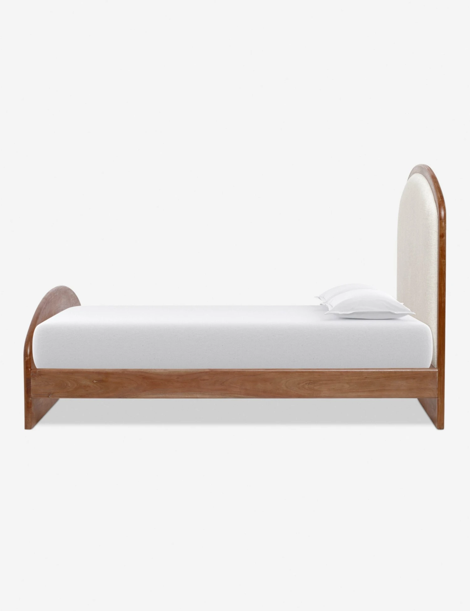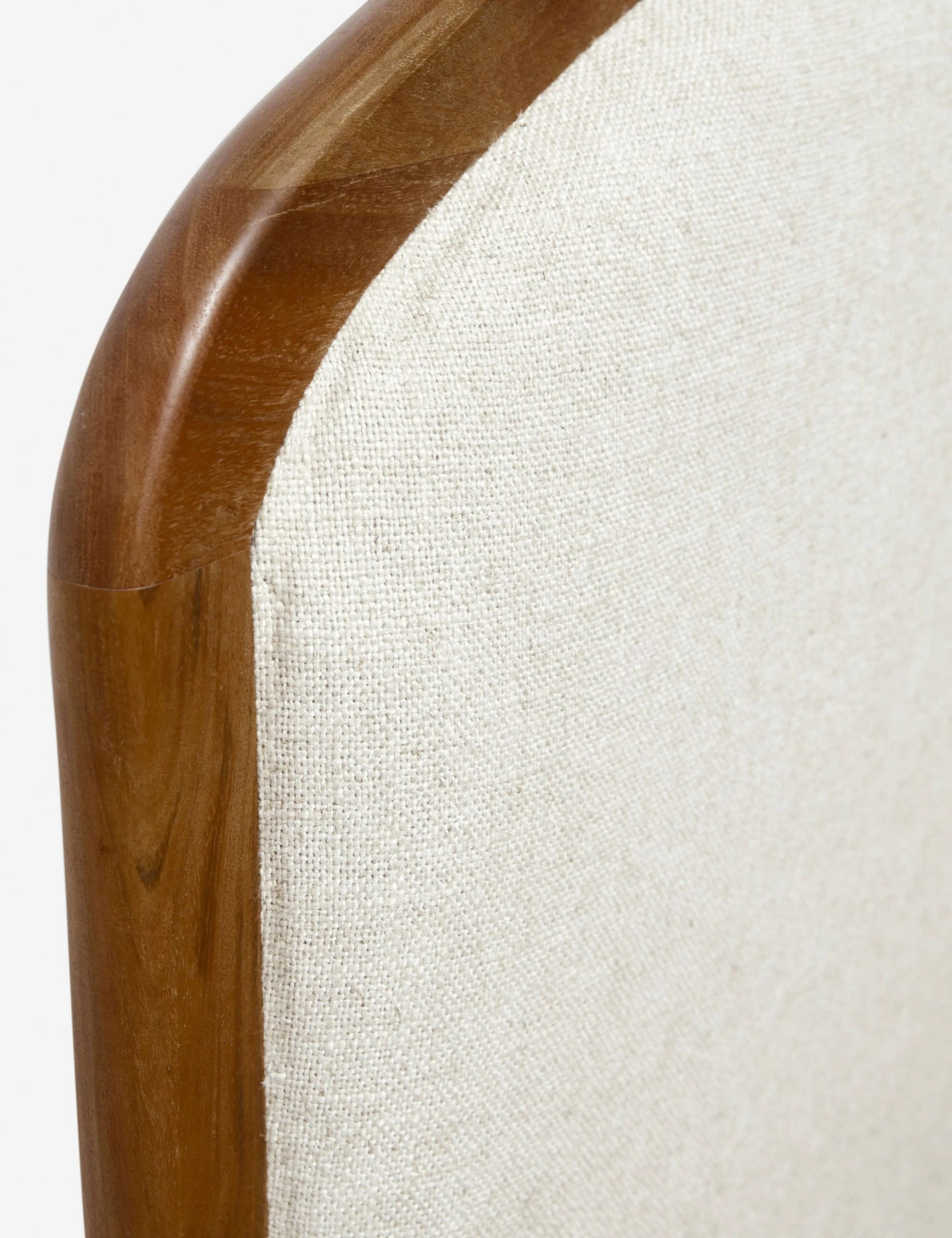 The clean, arched silhouette of this bed frame and headboard features an acacia wood border with plush linen upholstery. We love the pairing of natural materials in this versatile bed for a soft, elegant bedroom upgrade ready for transitional appeal.