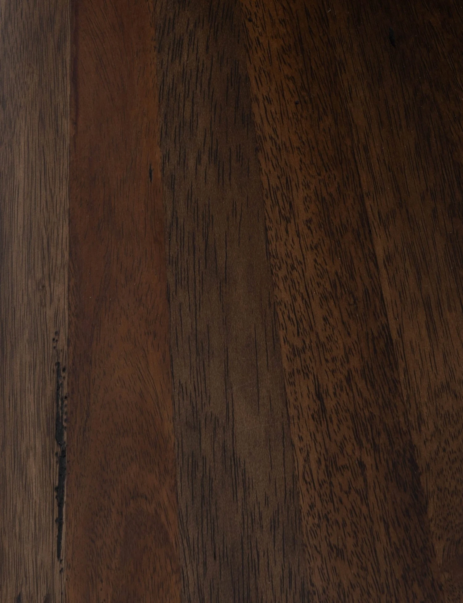 In a moody, darker finish, the character-rich knots and grains brilliantly tell the story of this reclaimed wood coffee table. A smooth oval tabletop combines with a widening, rough-hewn base to give the natural beauty of the wood a sculptural feel. Style this coffee table with handcrafted rugs, tactile accents and a pop of earthy reds and greens.