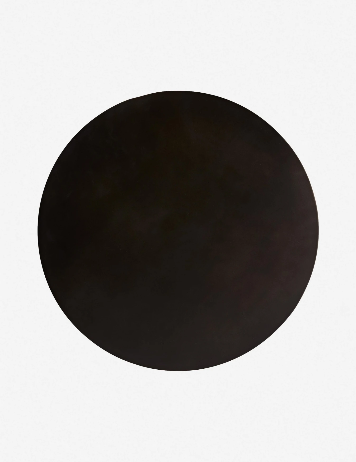 This round side table is a dream for open and airy spaces, featuring a tapered base constructed with iron spindles that let light shine through. The tabletop has naturally occurring irregularities in tone and texture, giving it an artisan-inspired finish.