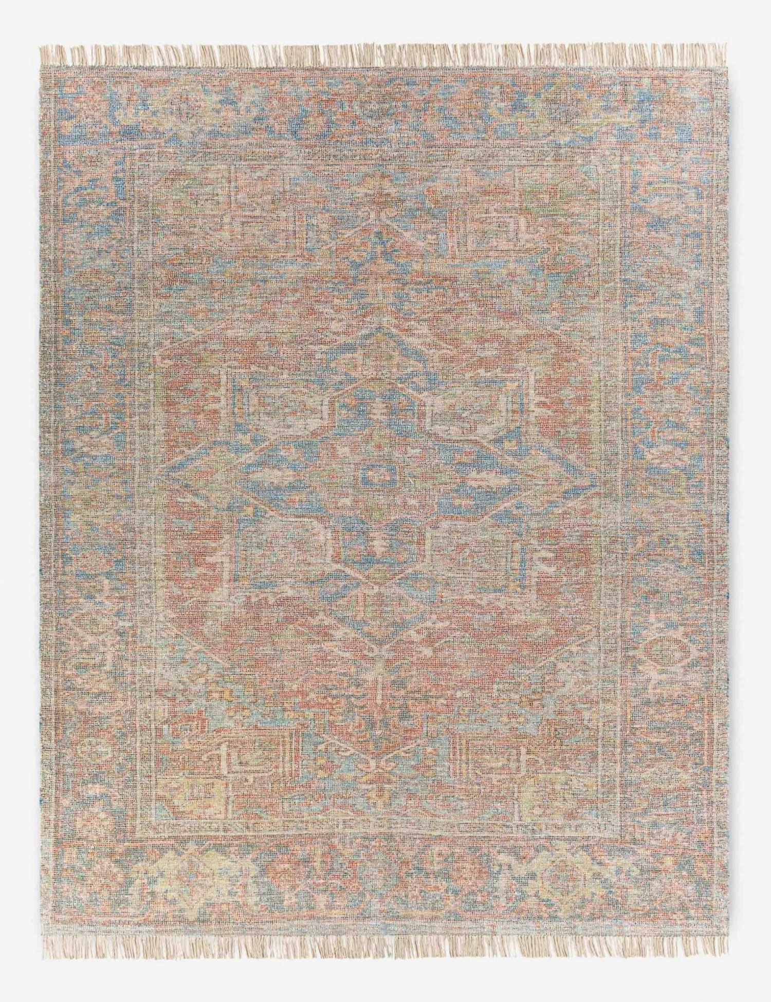 Featuring muted neutrals, stylish fringe, and an artfully faded medallion motif, this area rug is a tonal accent for your space. Handwoven from a cotton blend, this easy-to-clean floor rug adds chic, yet laid-back appeal to your kitchen, kid’s room, or entryway.