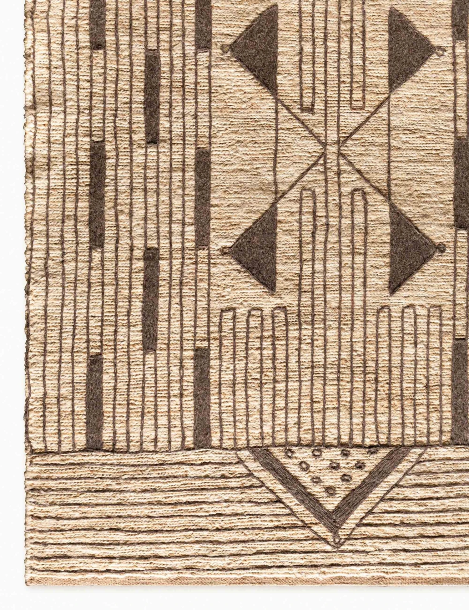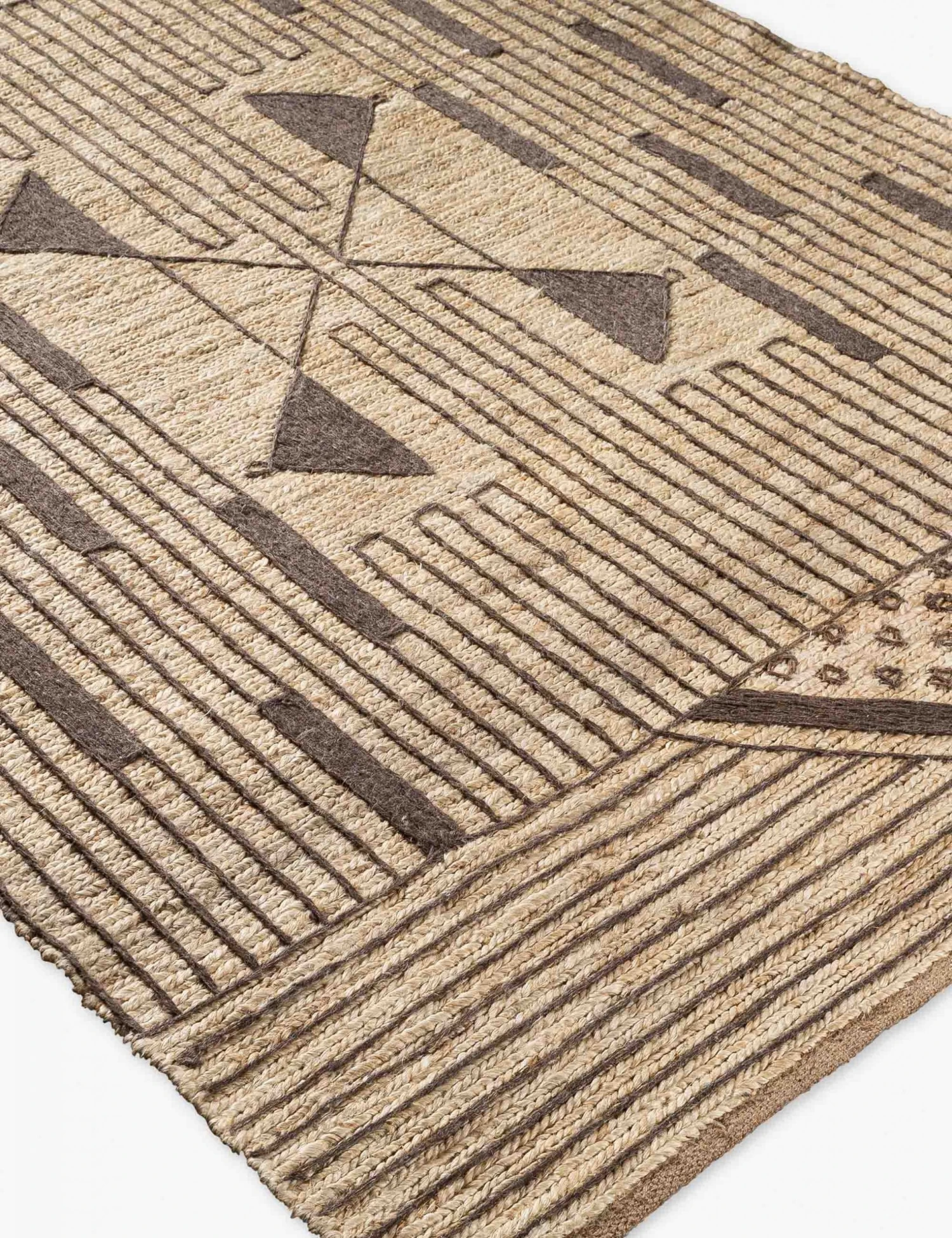 Earthy and textural, this rug will ground your space. Hand-knotted with natural jute and wool fibers, this area rug boasts organic elements and an intricate linear pattern throughout. Great for high-traffic areas thanks to a durable, low-pile finish, it’s the perfect dining room or living room area rug.