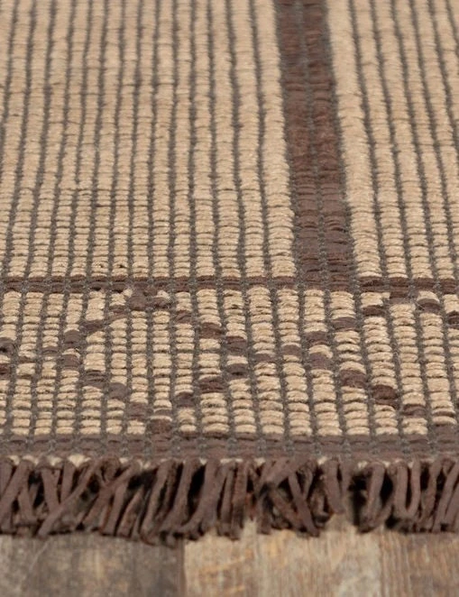 Handwoven from a unique blend of jute and leather, this area rug fully embraces its natural textures with a geometric pattern and globally influenced design. The neutral palette works beautifully in mid-century spaces, and can help provide a grounding look for brighter, more contemporary rooms!