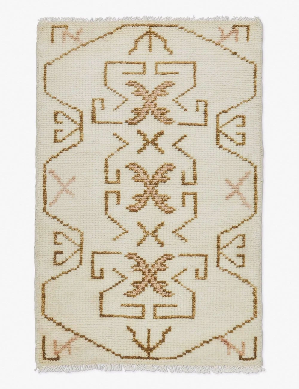 A reinvented geometric design in a warm palette that’s been meticulously hand-knotted together using 100% sheep’s wool, lending modern personality with a subtle hint of its Oushak influence. Soft wool illustrating striking symmetrical linework in a neutral hue makes this rug the versatile yet bold layer you’ve been searching for.