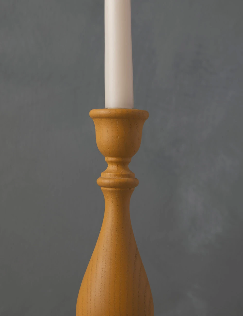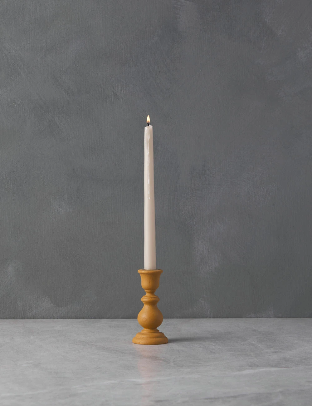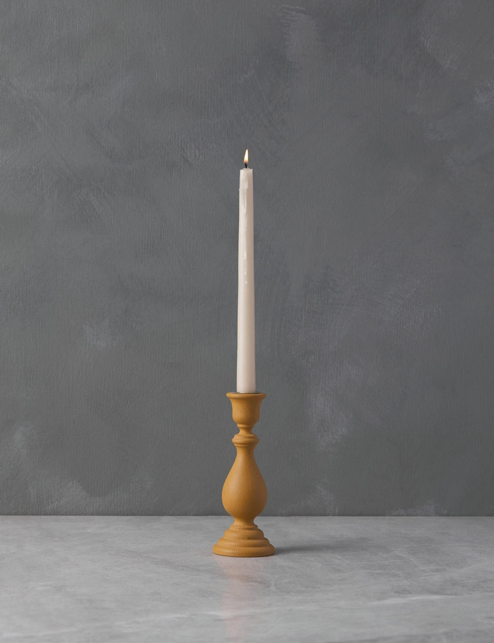 Vermont-based ceramics studio Farmhouse Pottery creates handcrafted accents and table essentials with rustic charm. Lathed from northern white ash wood and finished with a rich paint finish, these candle holders inspire a classic look with a timeless silhouette. Whether balancing a mantelpiece vignette or elevating a fully set table, this set of candle holders is a splendid touch for a warm decor.