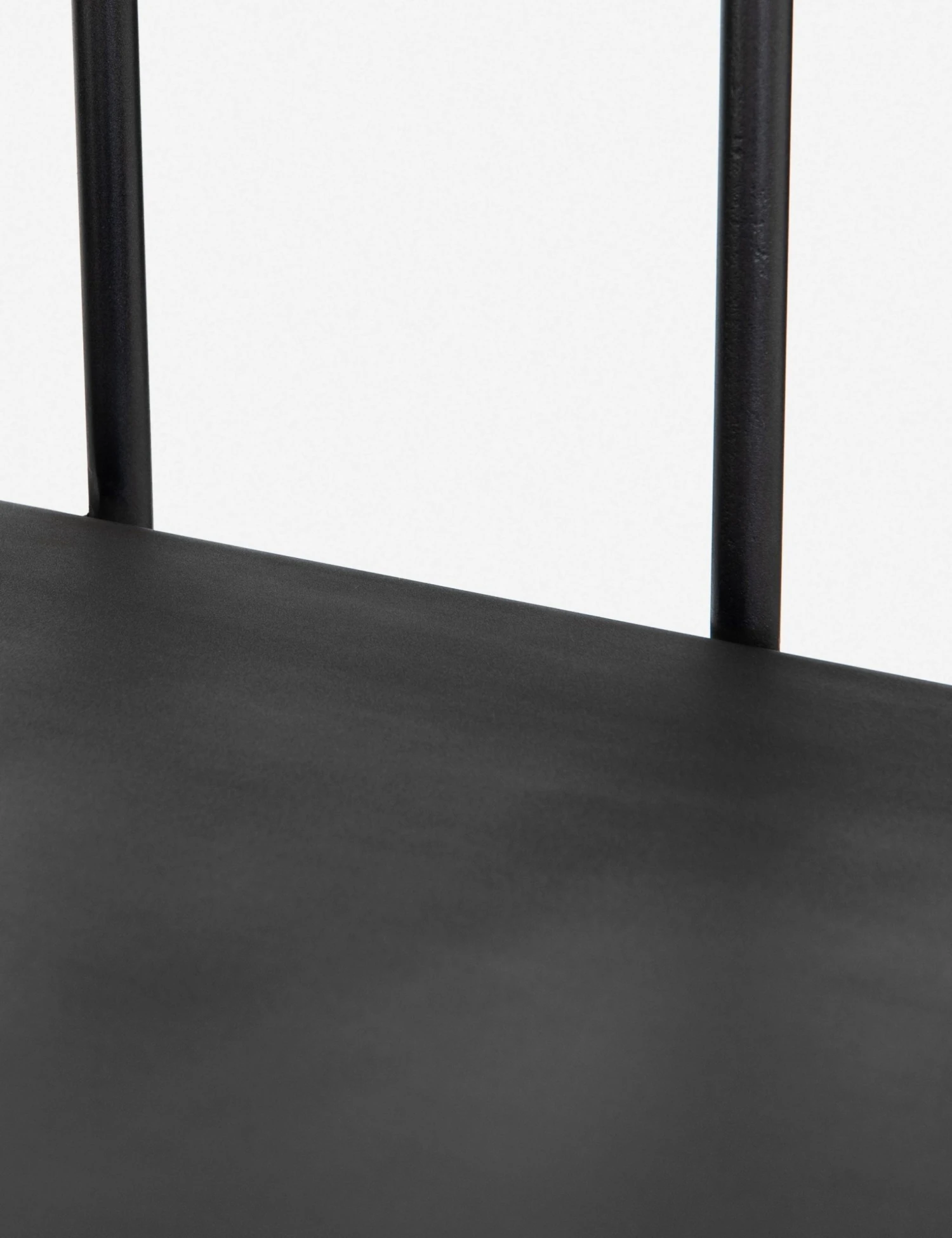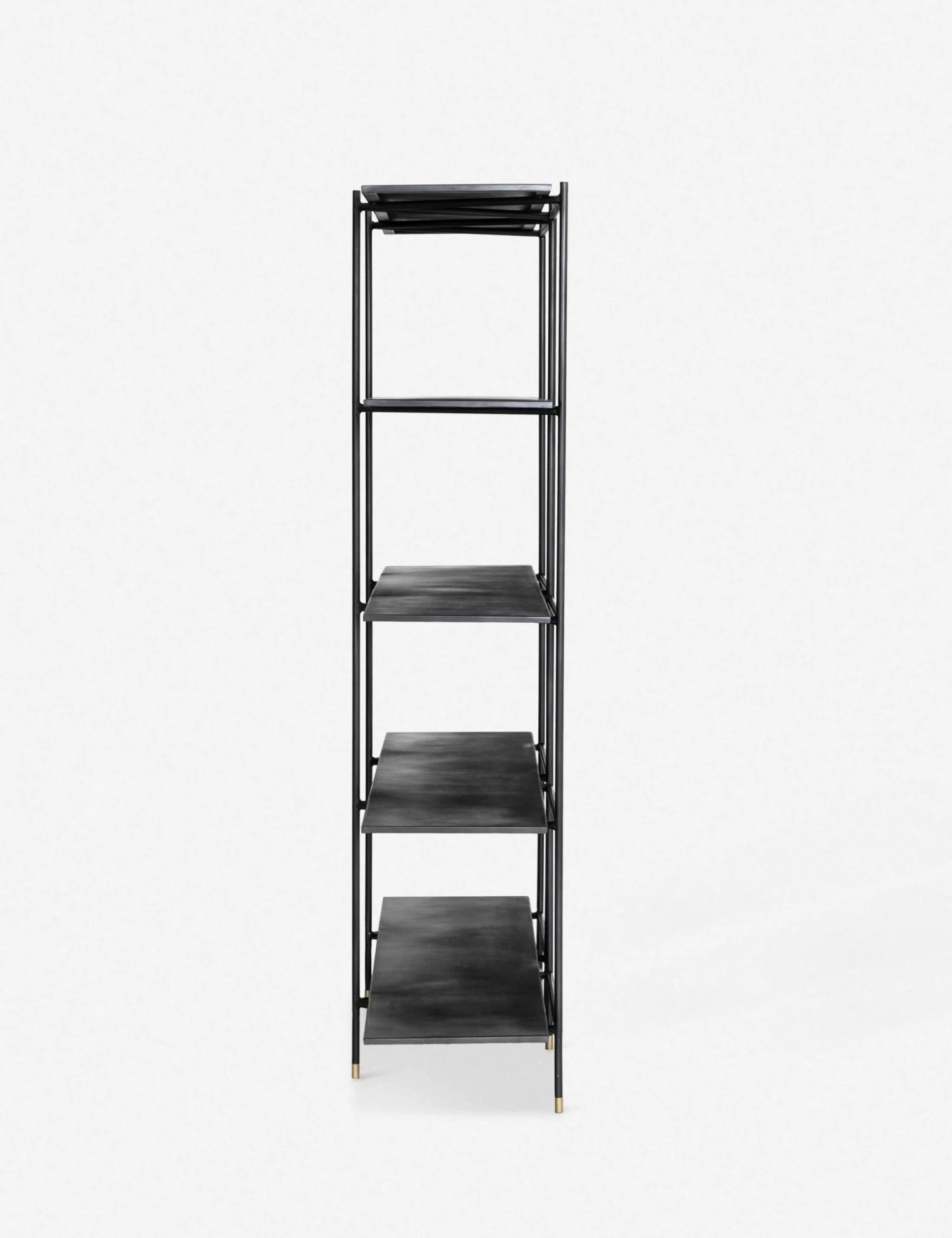 Sleek, industrial style defines this bookcase, with an open design and slim, triangular iron supports with gold-tipped feet.