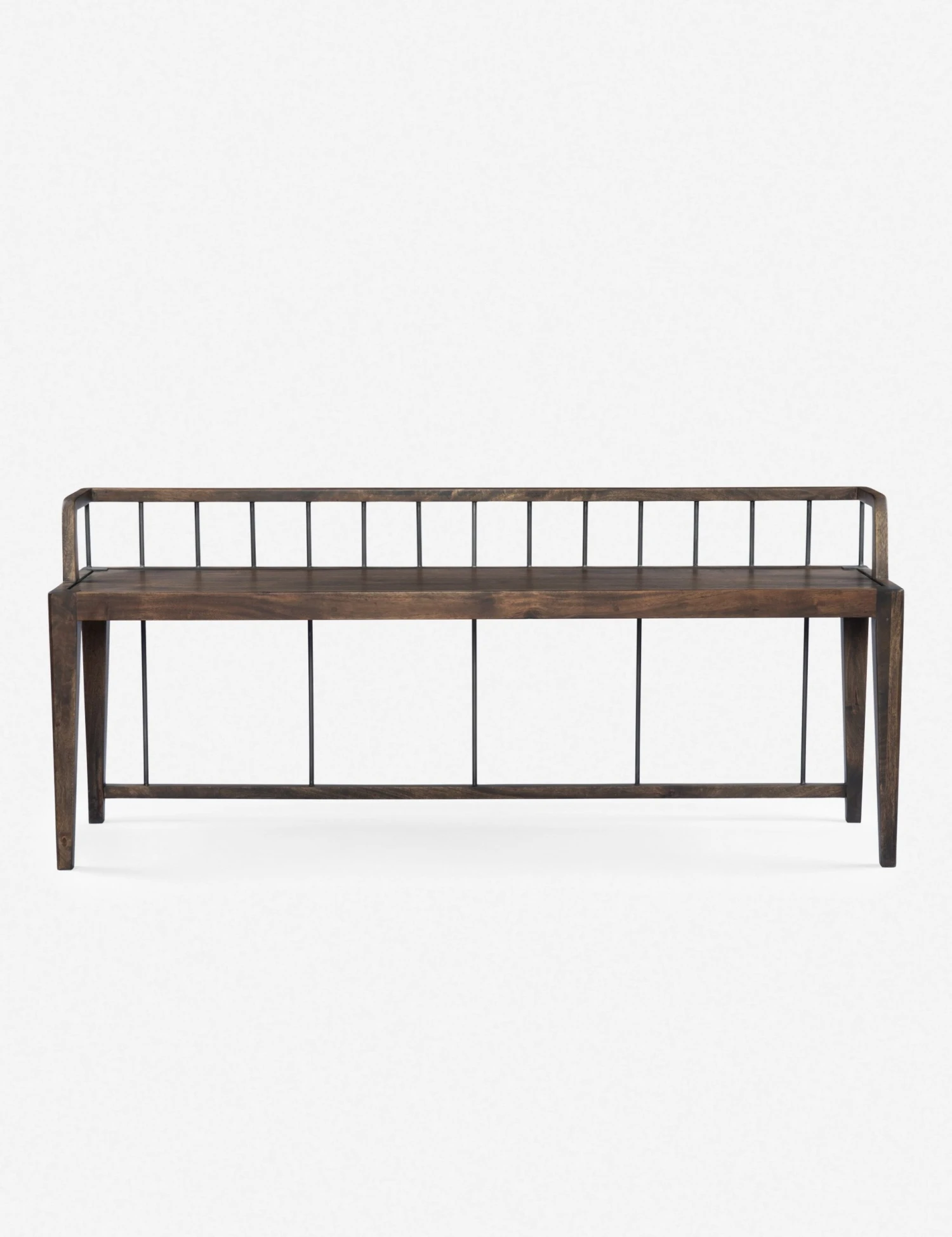 This wooden bench brings a vintage-inspired appeal to your home. Slim spindles, a low back, and tapered legs put a modern twist on this seating piece. We love it styled in entryways, hallways, or even dining rooms.