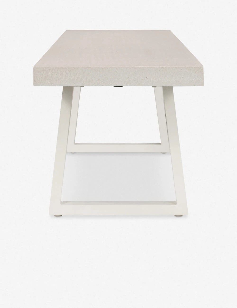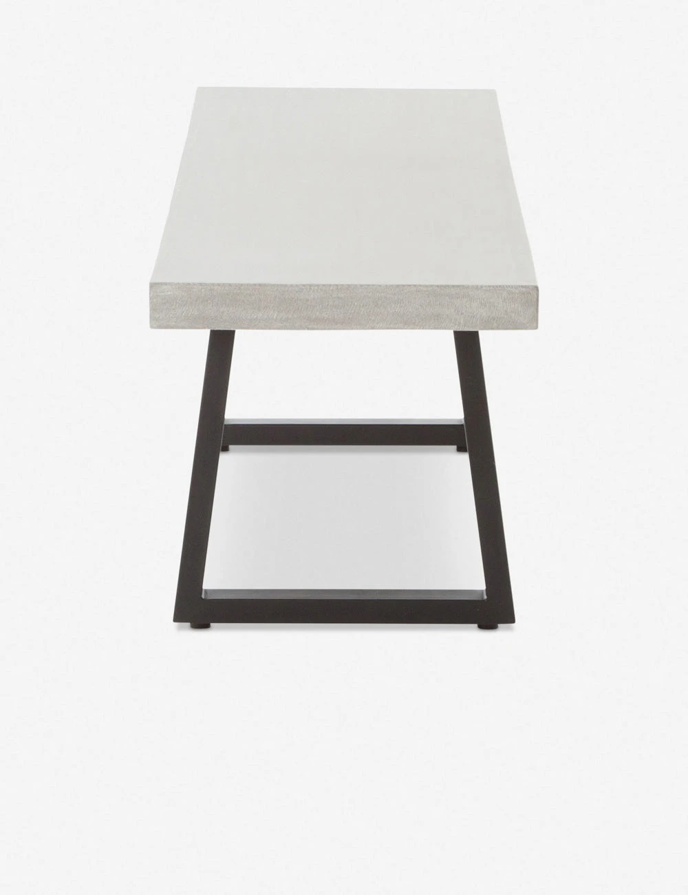 Add this dining bench to the mix for modern style indoors or out. Featuring a lava stone top and angular iron legs, this dining table bench has a minimalistic look with an industrial edge. Style this bench at your outdoor table, in the garden, or wherever you need sturdy seating or an extra spot for plants and decor.