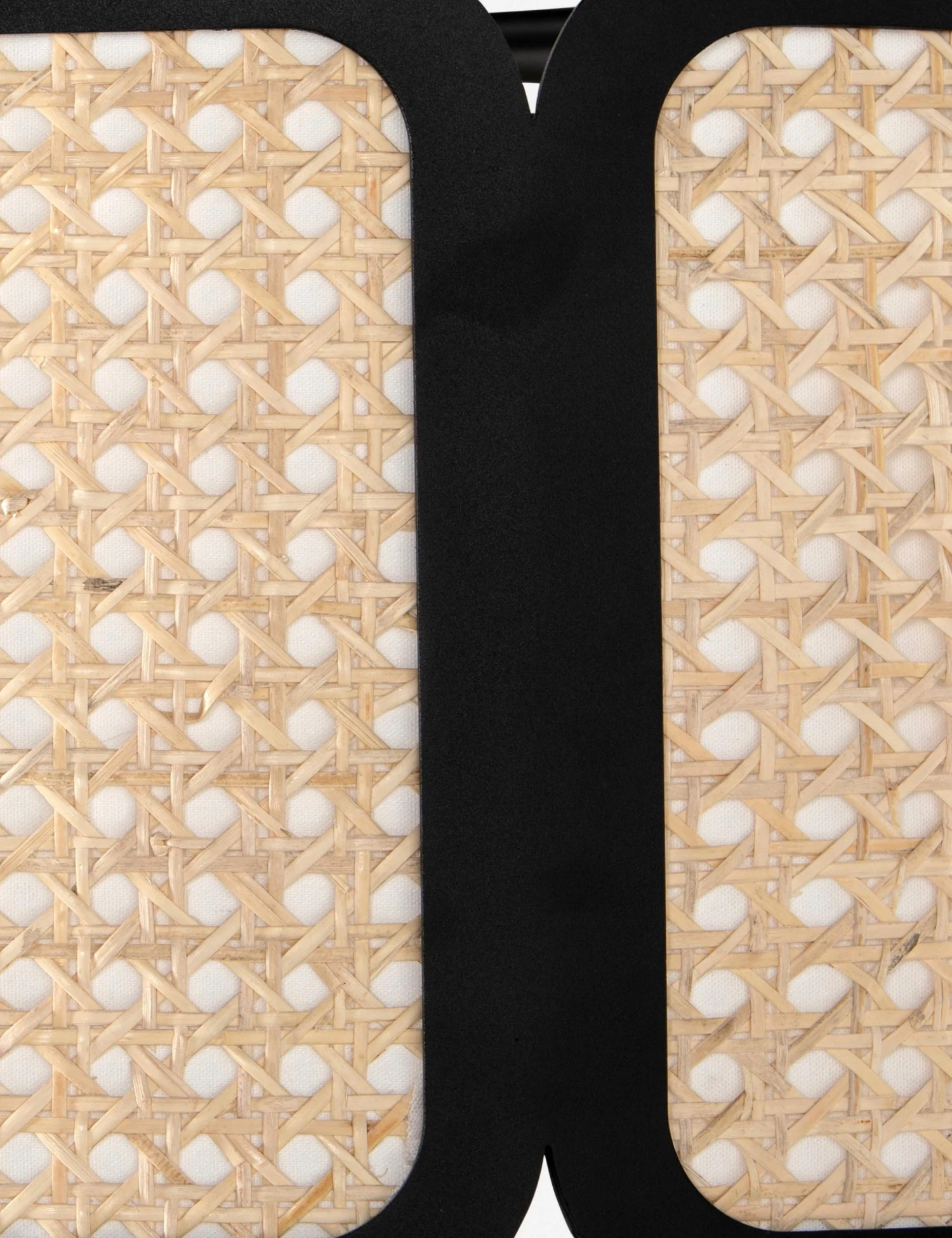 Vintage-inspired cane paneling is woven into a drum chandelier design with black iron framing to offer dramatic contrast and modern appeal. Beautifully textured and naturally chic, this chandelier provides a woven lighting statement for a transitional dining room or living space.