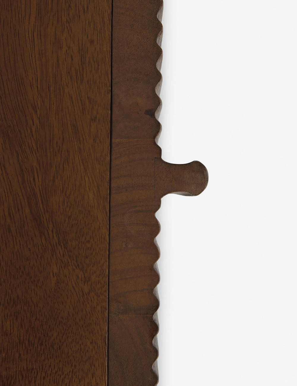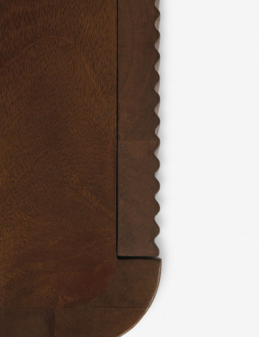 The Merrit nightstand features a deco-inspired woodwork construction that pairs crisp, curving lines with ridged detailing and a carved drawer pull. A a convenient drawer provides helpful storage for this bedside table in a darker finish. This piece is from our exclusive Sarah Sherman Samuel collaboration and features all the trademarks of her warm, edited style.