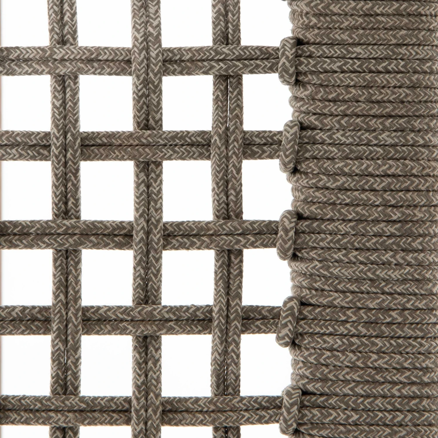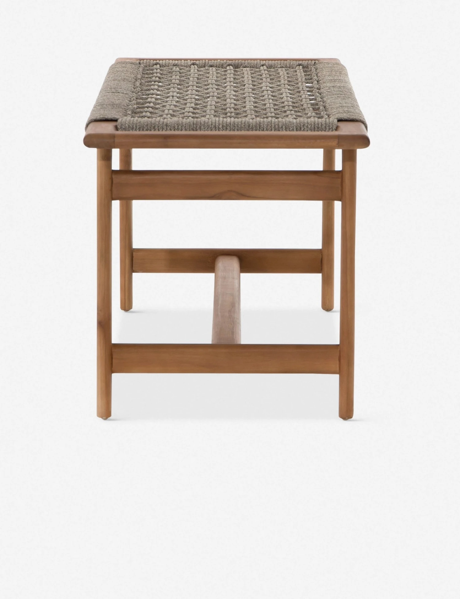 Modern design with a texture-driven update. This versatile bench features a sleek teak wood frame, with an earthy woven rope seat. Backed with discreet aluminum support, this sturdy piece is a must of outdoor entertaining spaces!