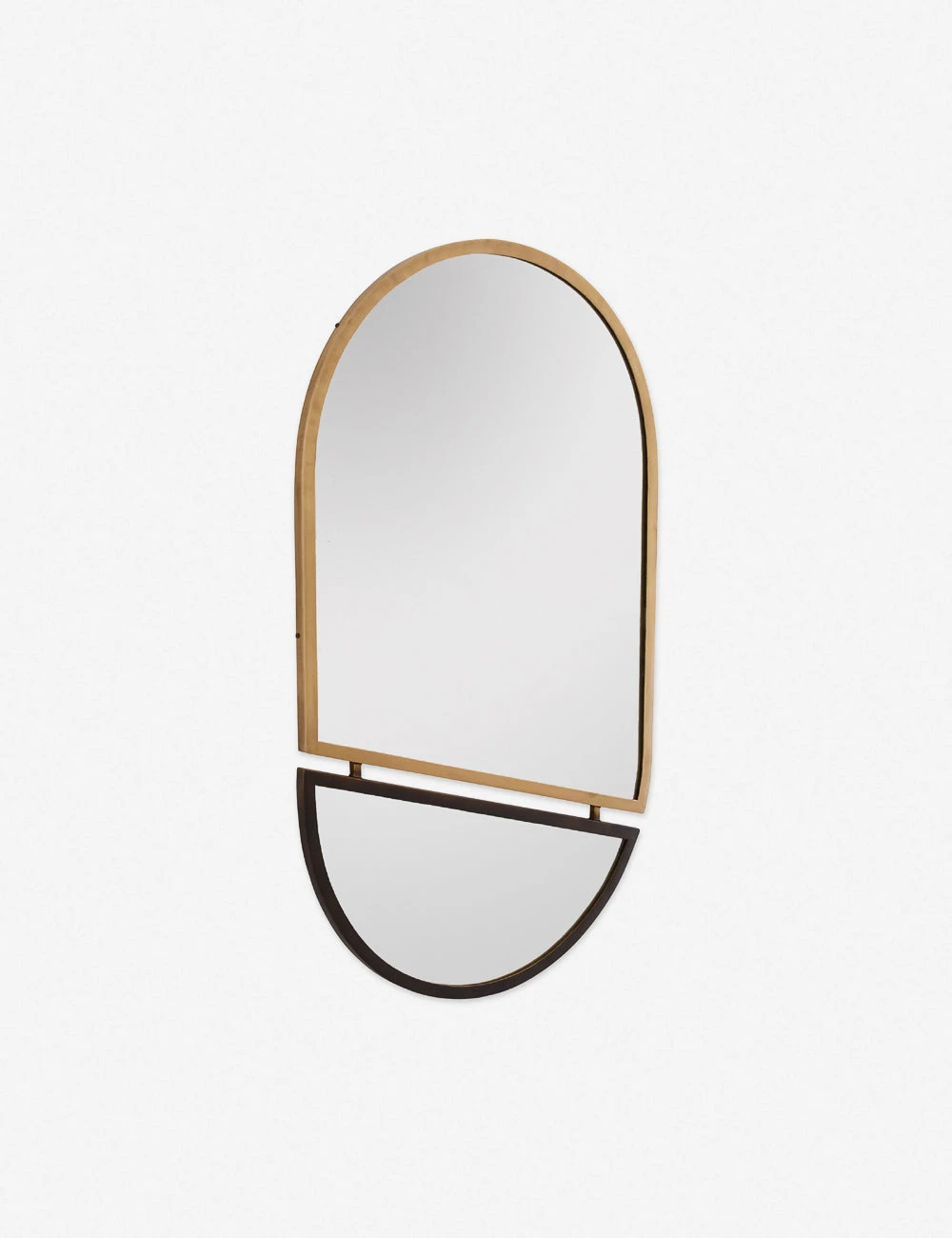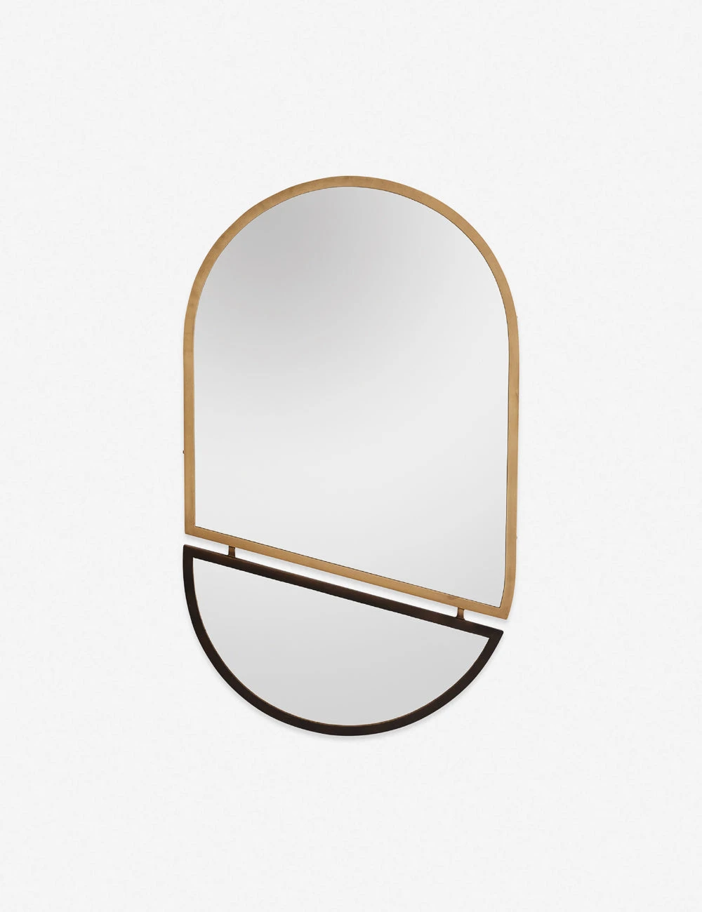 Inspired by Bauhaus design, a split oval silhouette brings a modern edge to this mirror. The two-tone finish and dynamic angles add instantly chic appeal to your entryway or home office. Hang this mirror vertically or horizontally for a signature look in your space.