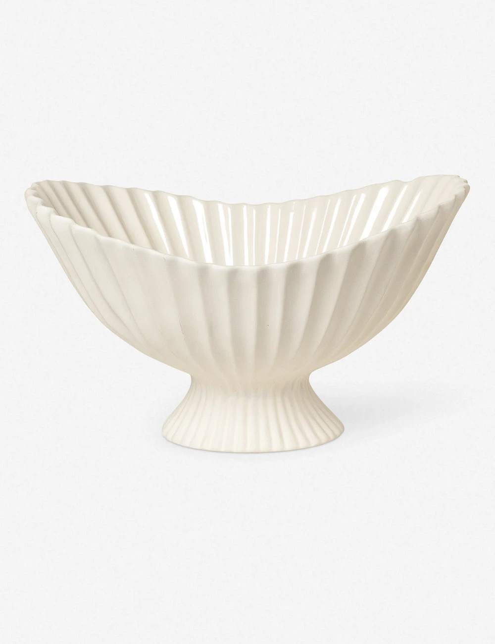 A scalloped form adds a touch of organic inspiration to this footed bowl. The matte exterior and clear glazed well create an elegant contrast for eye-catching appeal. Set off a display of florals or collected objects or style alone for a touch of sculptural drama on a table or shelf.
