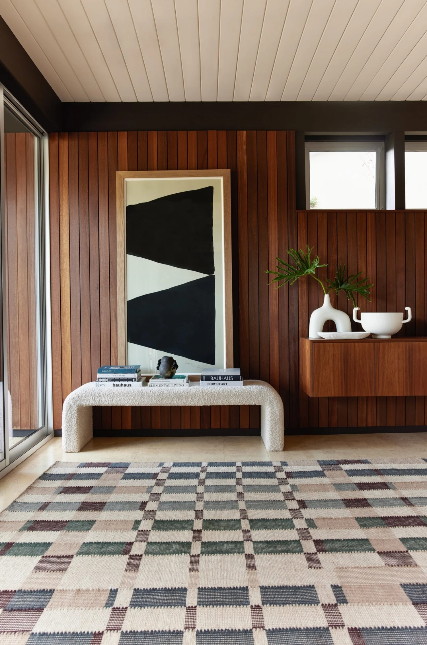 Los Angeles-based interior designer and author Nina Freudenberger is renowned for her California cool aesthetic, and for creating inspirational and bespoke spaces. Exclusively for Lulu and Georgia, Nina has designed a line of bold geometric rugs inspired by the women of the Bauhaus movement. This area rug, with its subtle rib weave, abstract color-blocked design, and earth-toned palette, is named after master weaver Marli Ehrmann. Crafted from a wool-cotton blend, this flatwoven floor rug is a supersoft, durable complement to your space.