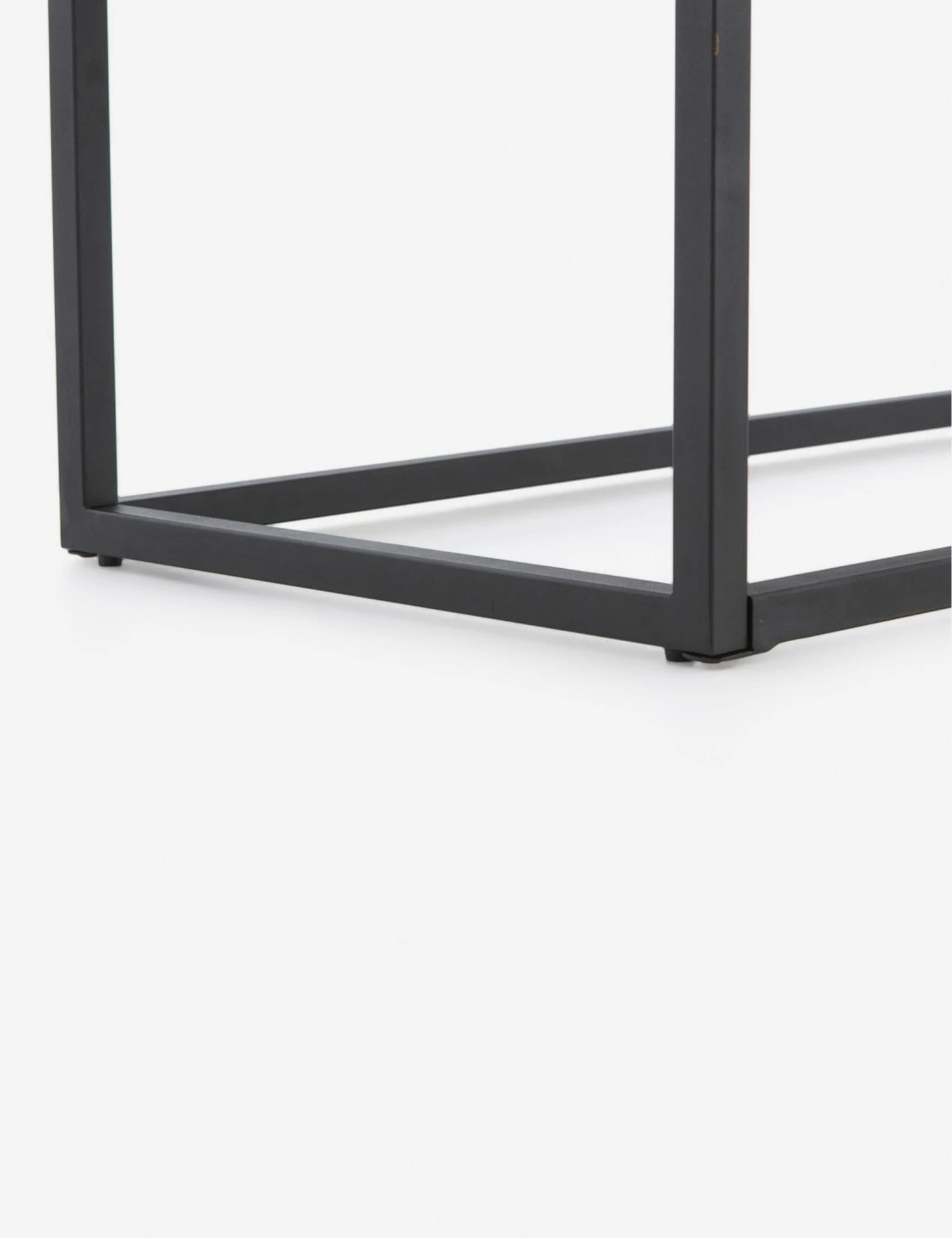 For classic modern style indoors or out, add this rectangular coffee table to the mix, featuring a concrete slab top and black iron base.