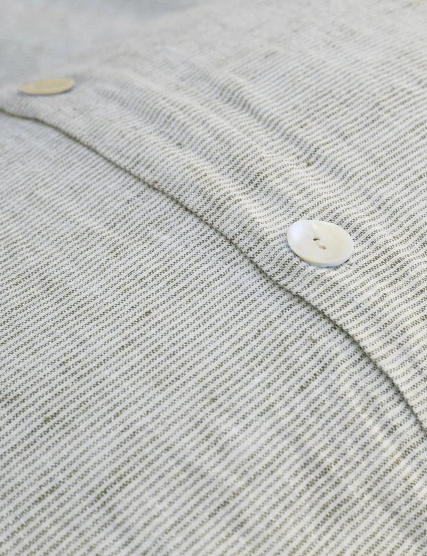 Simple yet stylish, the Logan duvet cover features a subtle heathered stripe effect for added texture in any bedroom. Made from linen, its frayed edges add a touch of coastal design. Finished with shell button closures.