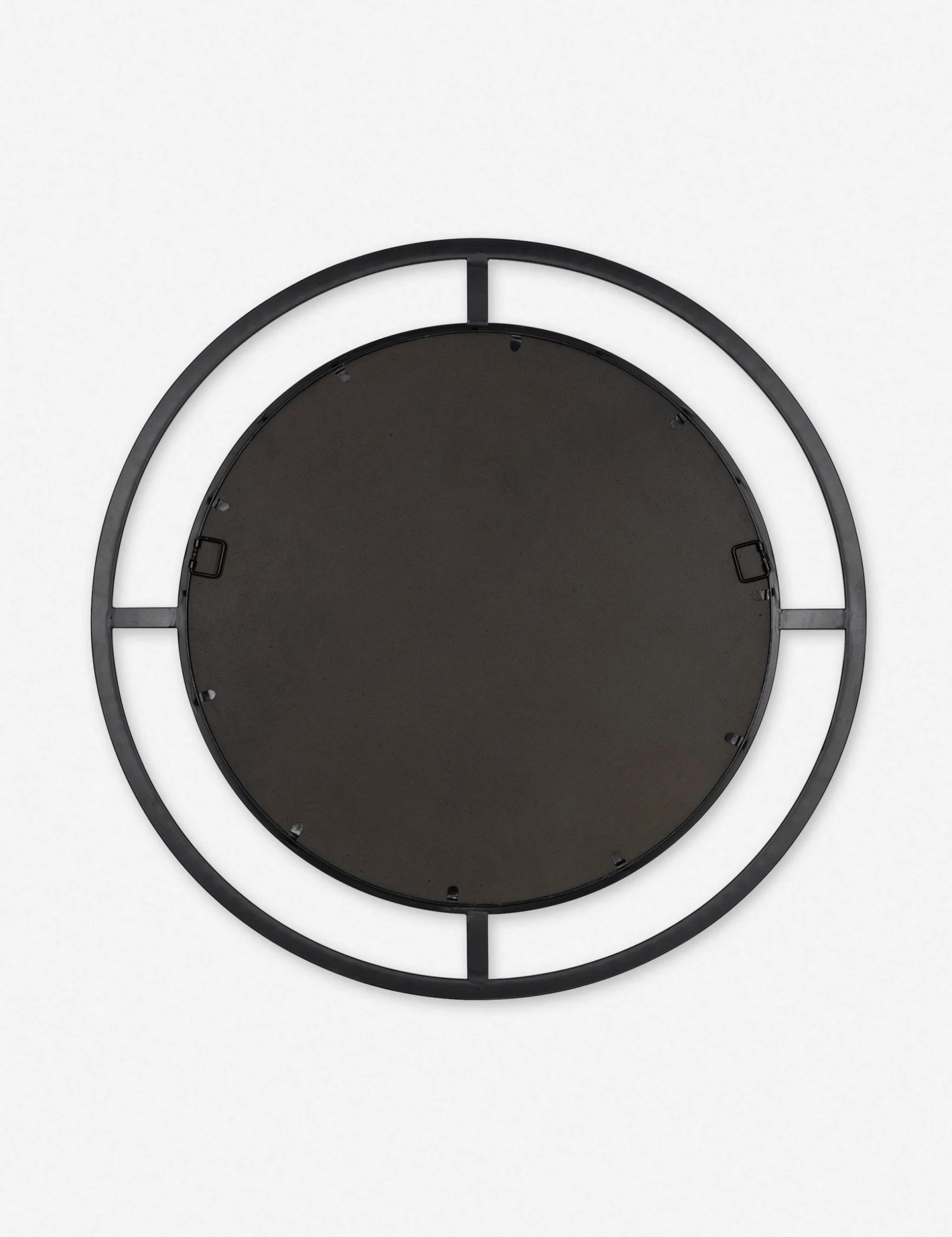 Featuring a streamlined metal frame with a porthole-like quality to it, this oversized round mirror balances a subtly nautical look with minimalist design. In a sleek black finish, this large wall mirror reflects a ton of natural light, so it will look great placed opposite any bedroom, dining room, or living room windows.