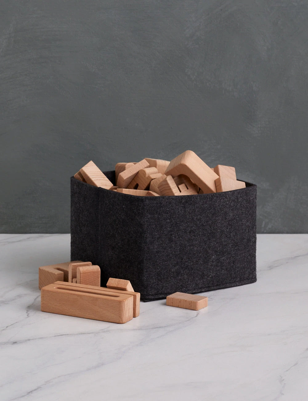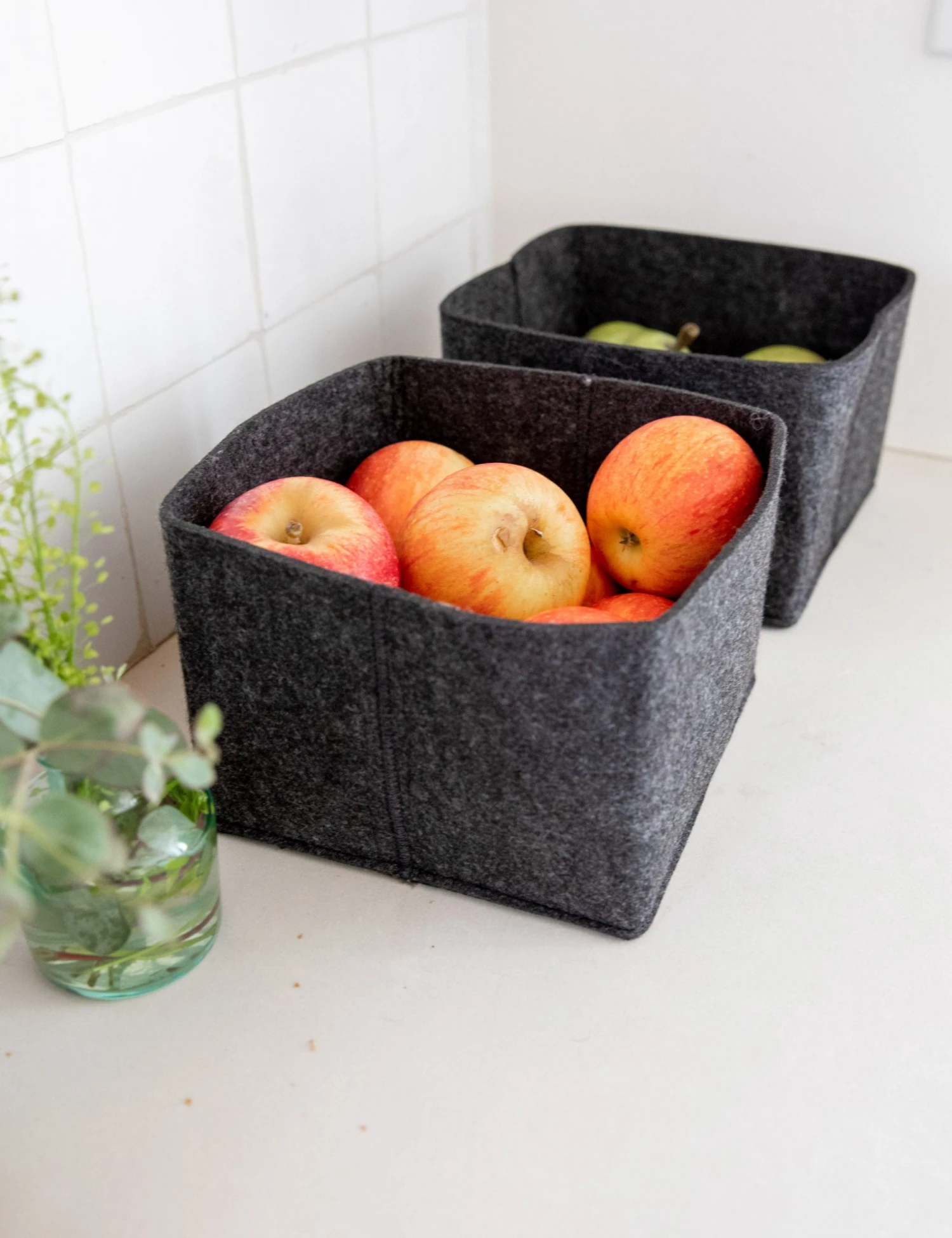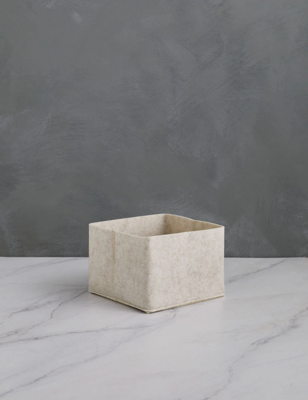 Discover flexible storage appeal with this versatile bin in a style tailored to your space. The dynamic design holds its shape but can fold over for an adjustable height so you can fit a lower profile for easy access or unfold for a taller, sleeker look—plus, the recycled felt fabric can be washed for easy care.