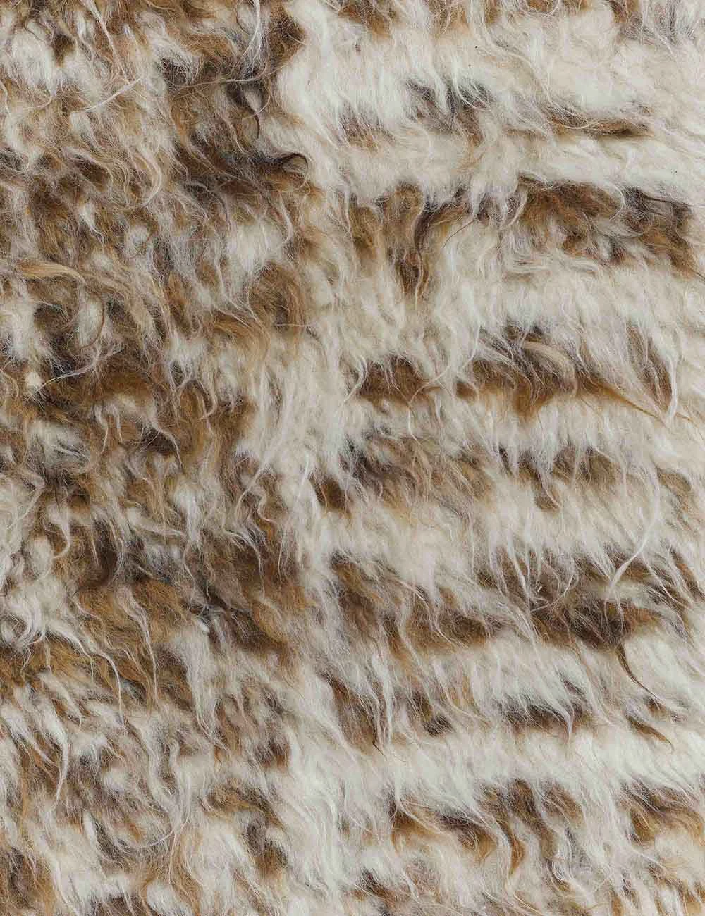 An abstract striped pattern on this Moroccan rug is chicly complemented by its plush shag pile, creating a cozy graphic statement. Made from hand-knotted wool and cotton yarns, its heathered look feature hints of brown, gold, and natural. Place this Moroccan style rug in your living space or under your bed.
