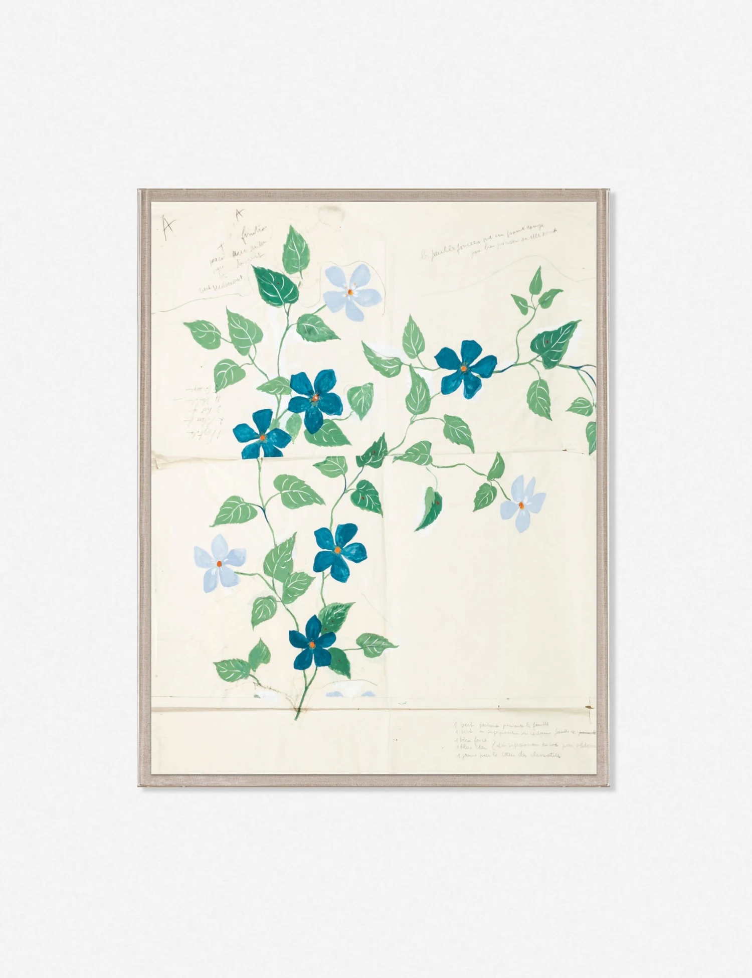 Portes des Fleurs 1 offers a floral arrangement with scrawls and marginalia marking the canvas, evoking an artist’s process. This wall art print is perfect for a home office or workspace to create an art wall decor that reflects attention to details, the art of becoming, and the organic beauty in discovery.